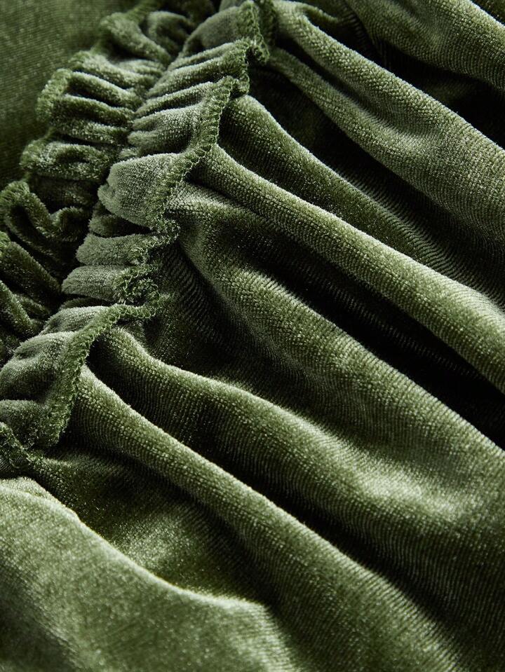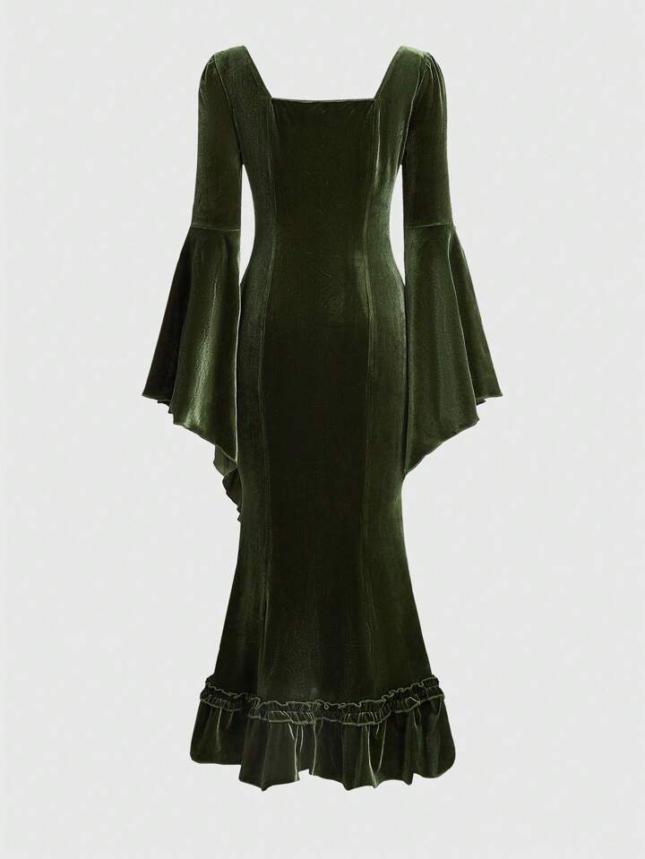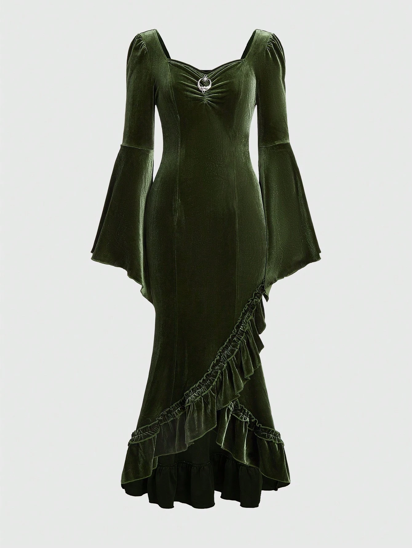 Hippie Vestido escote corazón de manga con volante ribete con fruncido pecho con fruncido de terciopelo