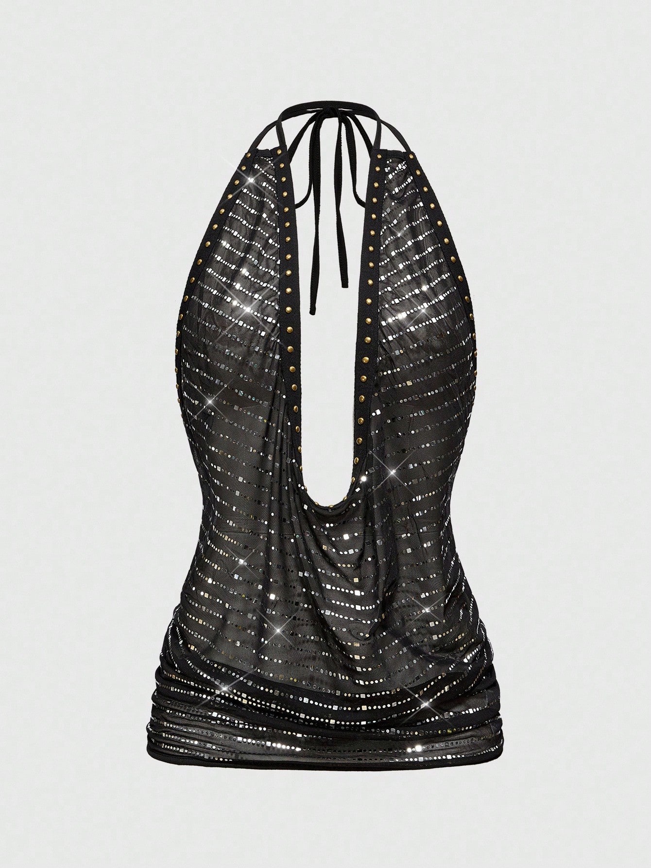 Hippie Top corto halter sin mangas, transparente, con escote profundo drapeado y estampado de cebra, estilo vintage de festival de música Y2K, para damas