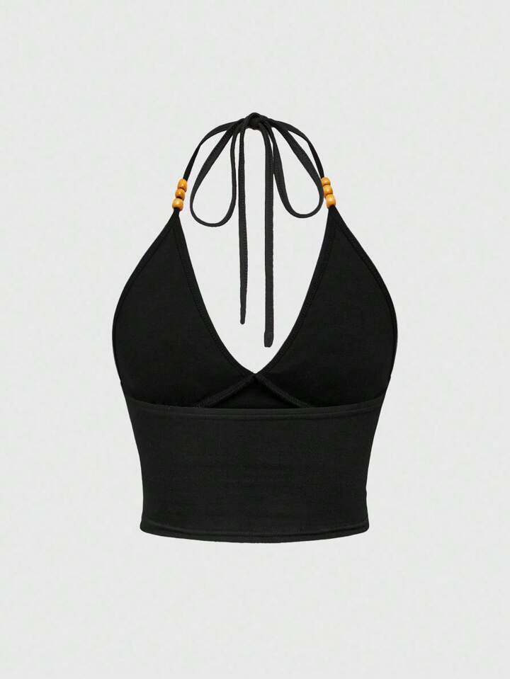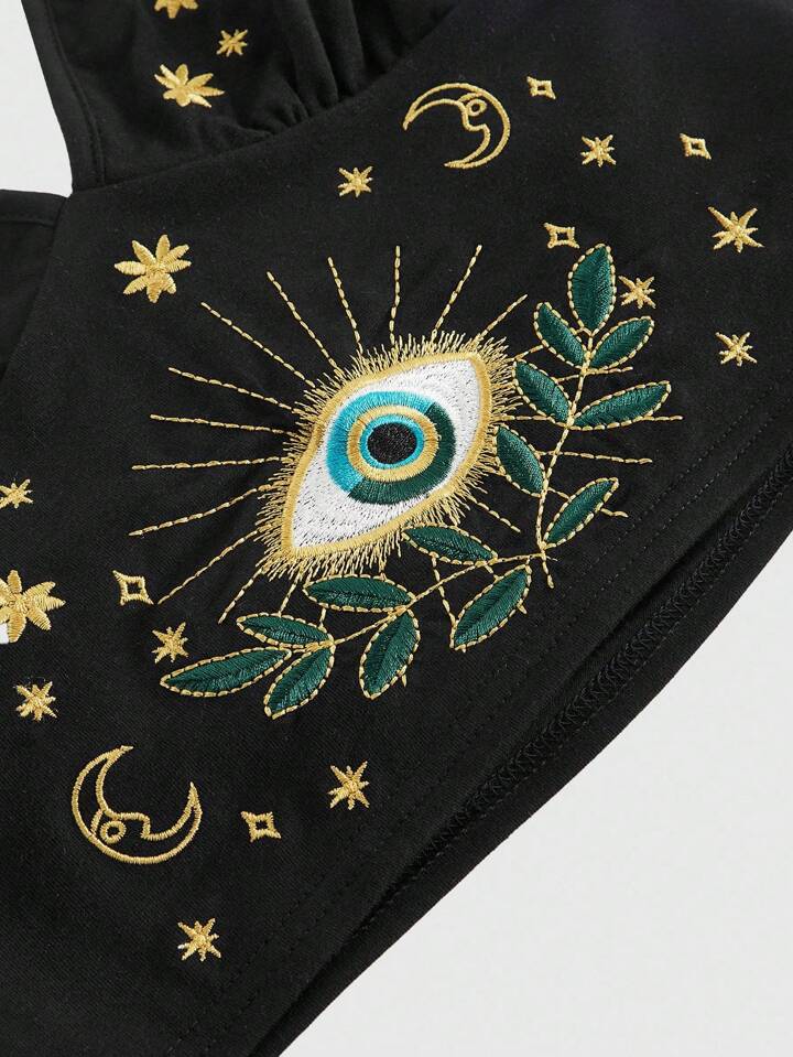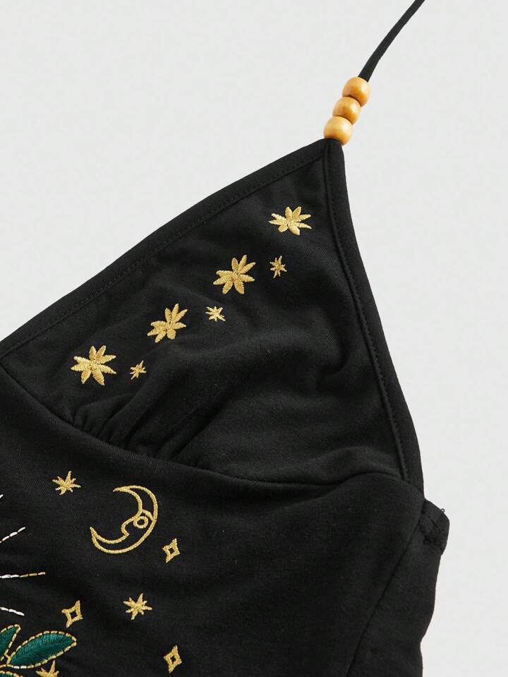 Hippie Parte superior de tirantes estilo tanque con bordado de ojo, luna y estrella, acabado en cuentas, en color cían, con estilo bohemio-chic de vacaciones para mujer