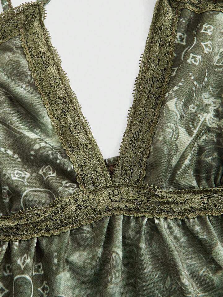 Hippie Top de camisola para mujer de verano con encaje de empalme floral y dobladillo con volantes