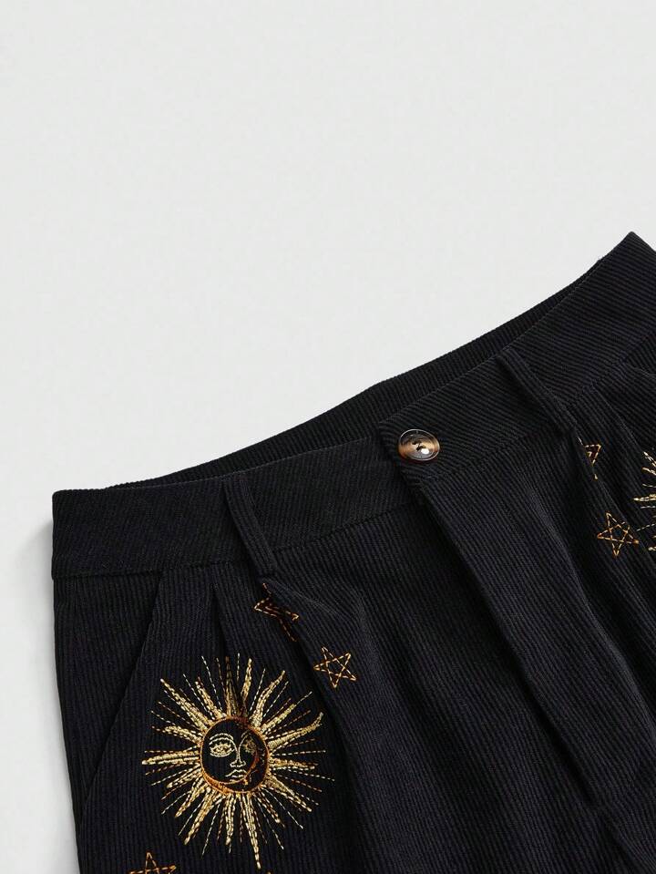 Hippie Shorts de verano para mujer con bolsillo bordado de sol y estrella