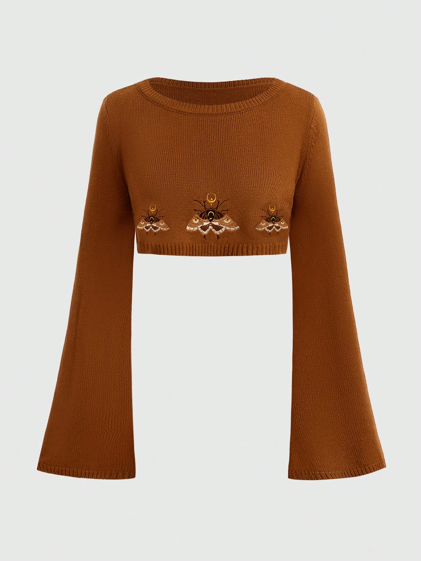 Hippie Jersey De Manga Acampanada Con Bordado De Animales Para Mujeres