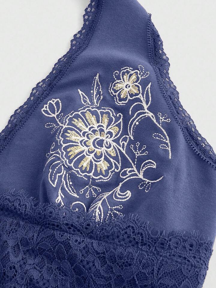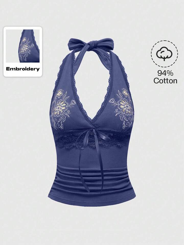 Hippie Blusa de verano casual de mujer con bordado floral y escote halter sin espalda