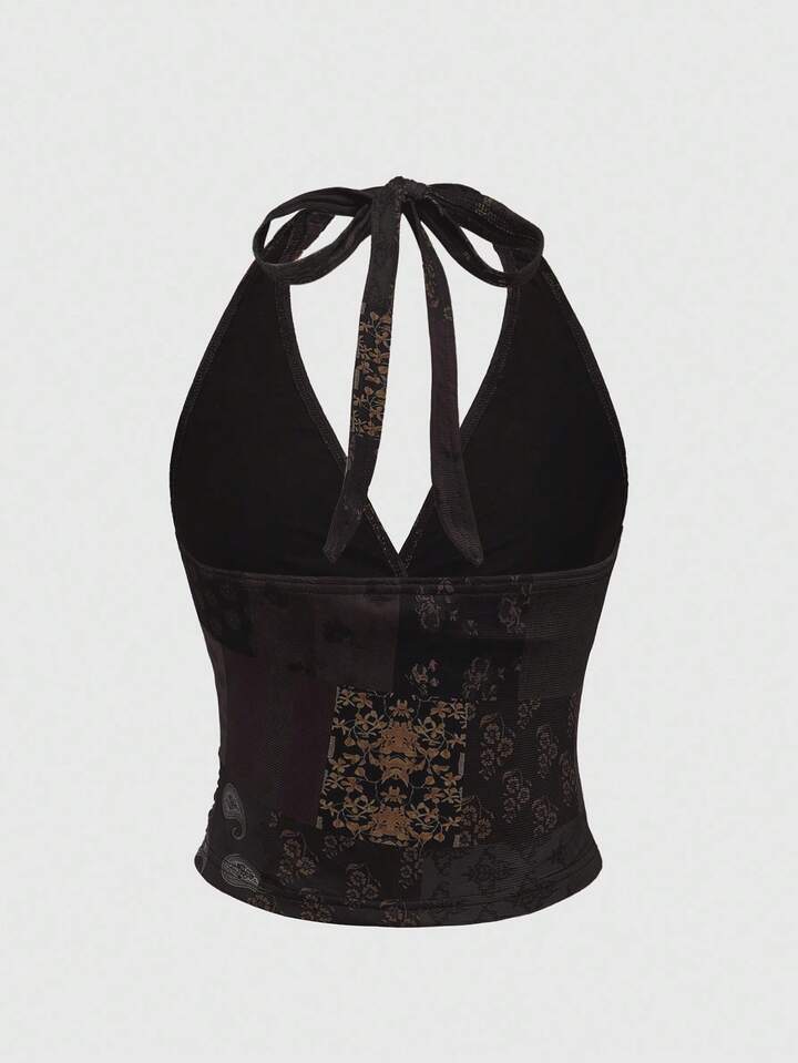 Hippie Top corto ajustado con escote halter y amarre en la espalda para mujer, de estilo casual y sexy