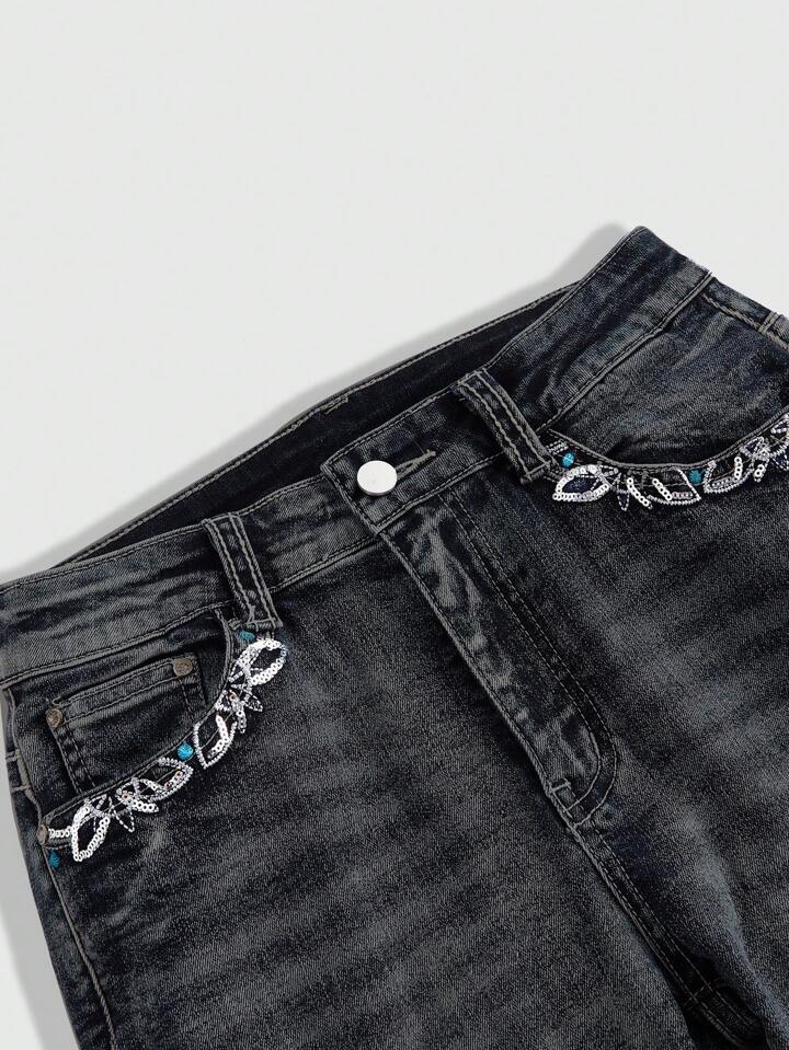 Hippie Jeans casuales de pierna acampanada con bolsillos bordados de estilo vaquero para mujer