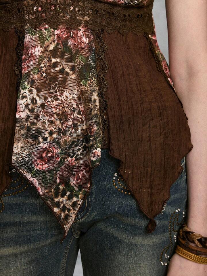 Hippie Camiseta de tirantes con cuello en V y estampado floral para mujer
