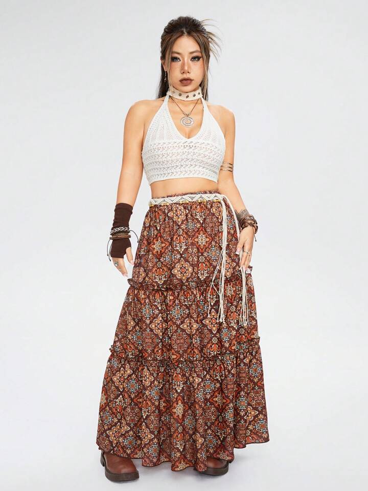 Hippie Falda Larga De Mujer Con Estampado Completo