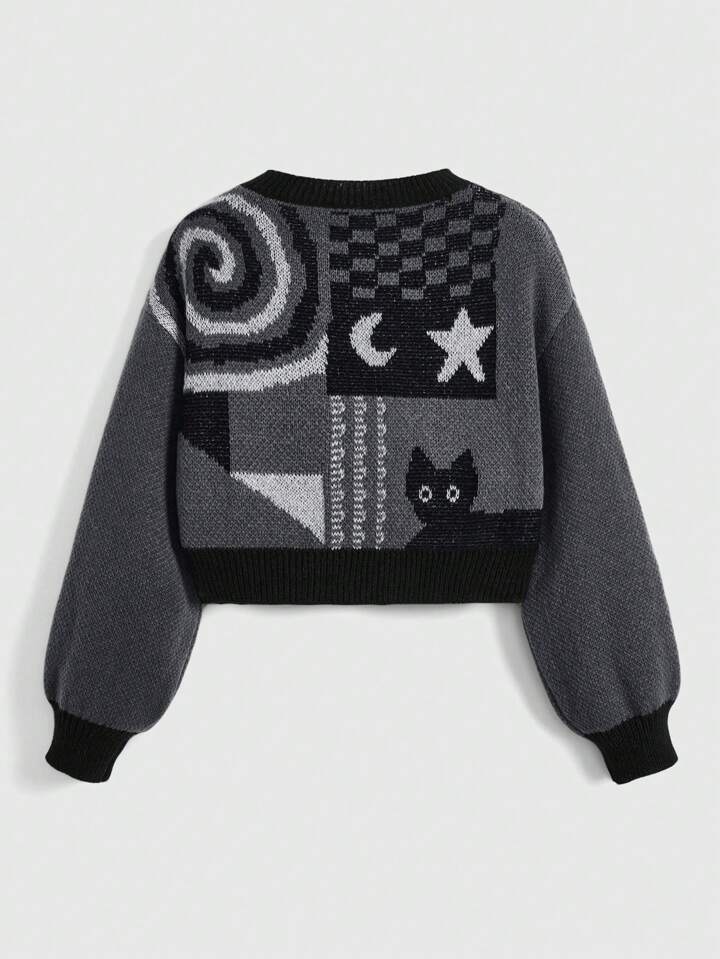 Hippie Suéter Para Mujer Con Patrón De Estrella Y Gato