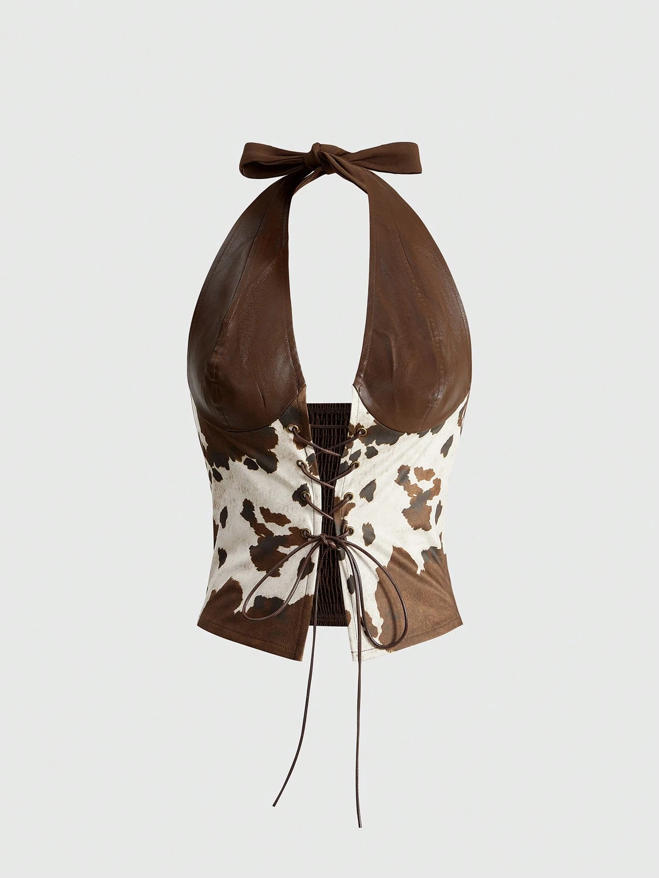 Hippie Top de tirantes de mujer con estampado de animales vintage y patchwork de PU