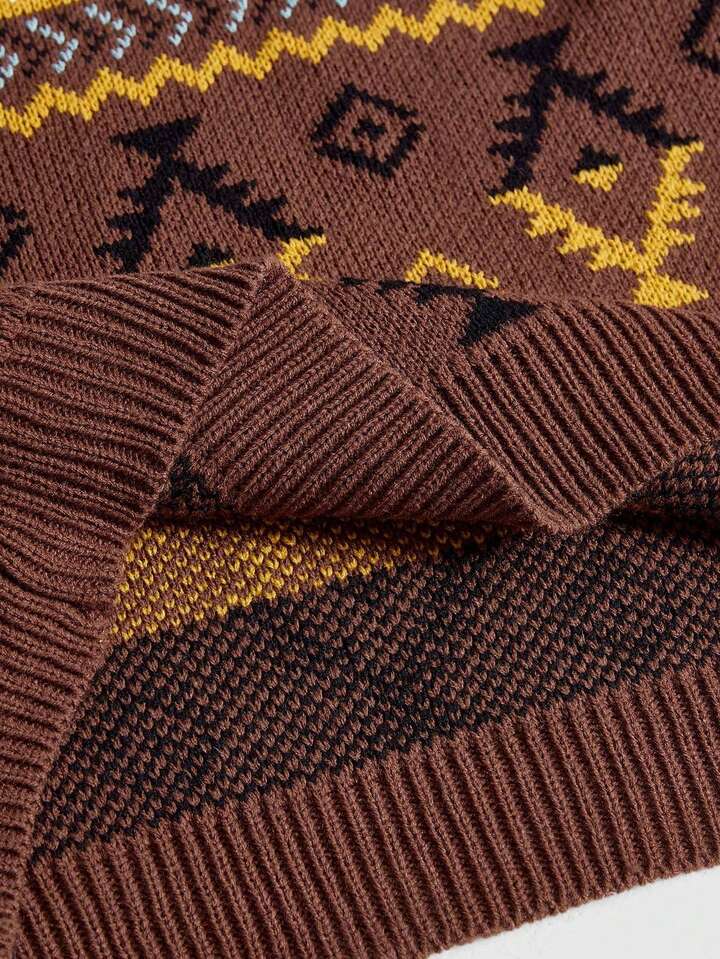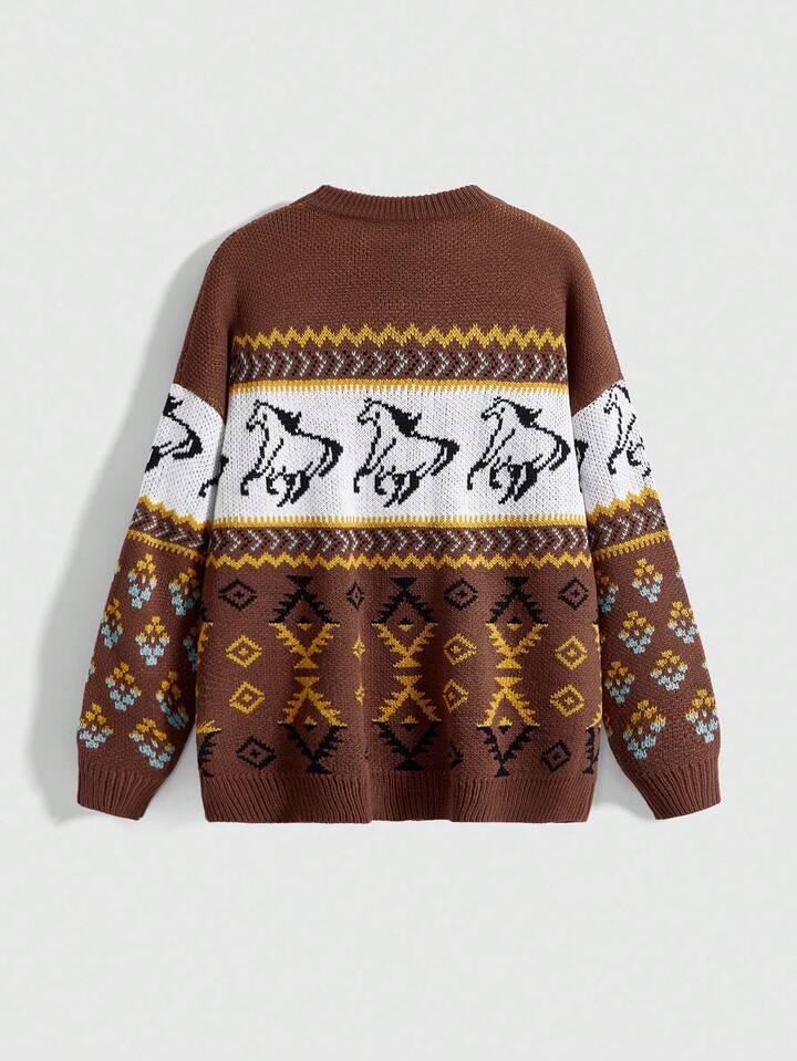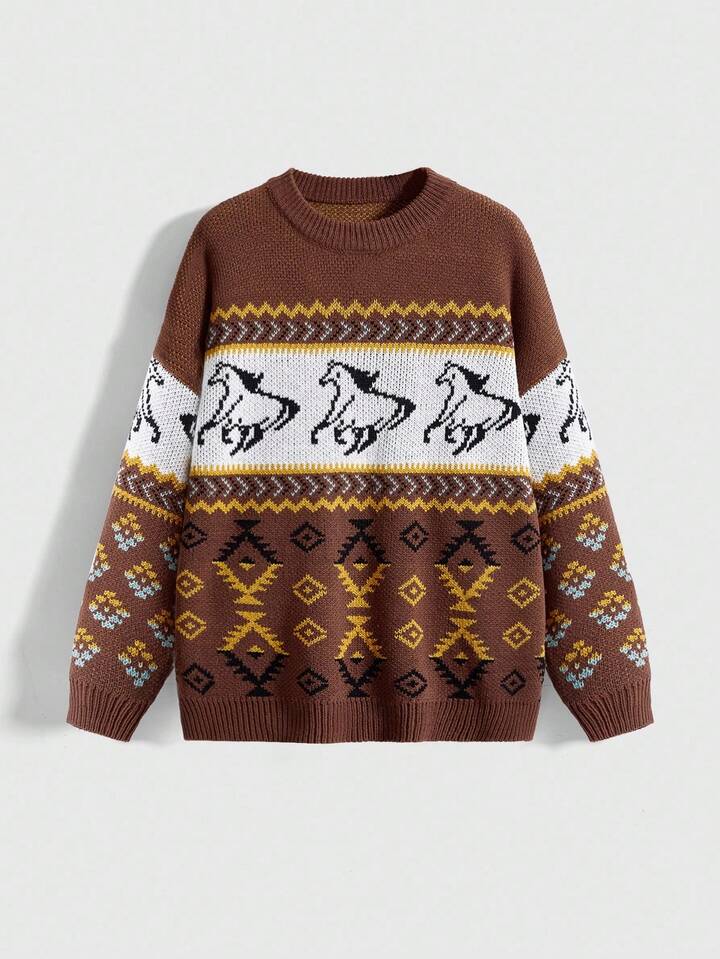 Hippie Suéter de mujer estilo vaquero con estampado geométrico de caballos en estilo Fair Isle