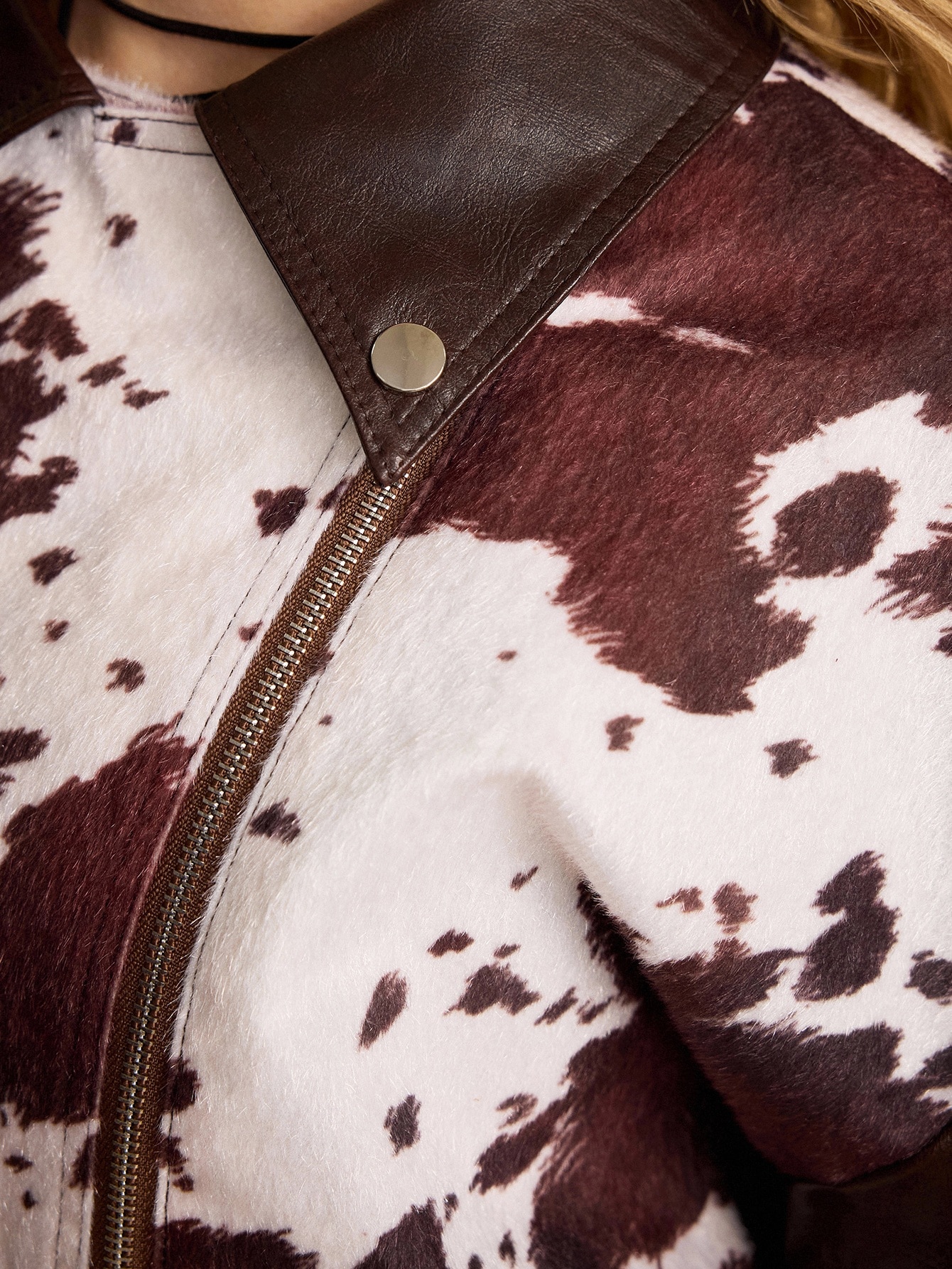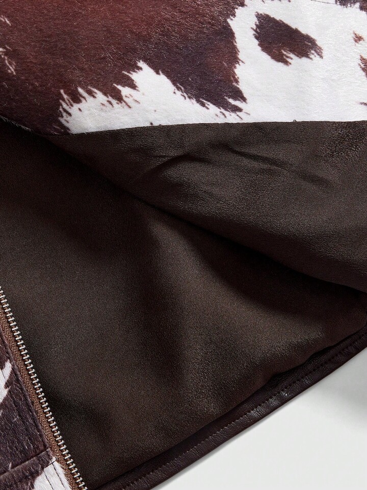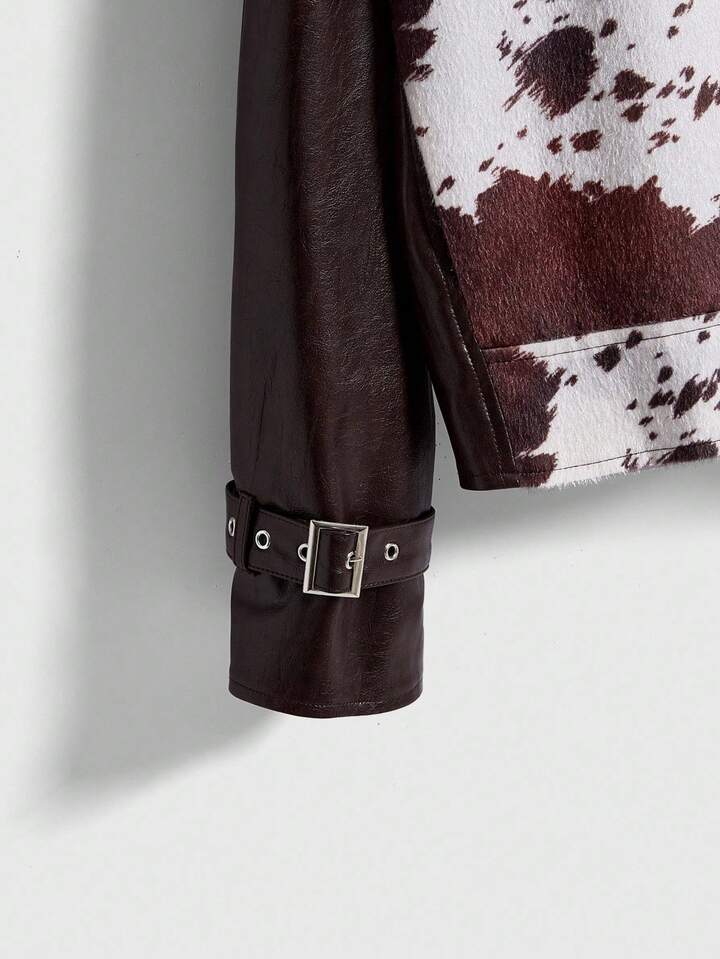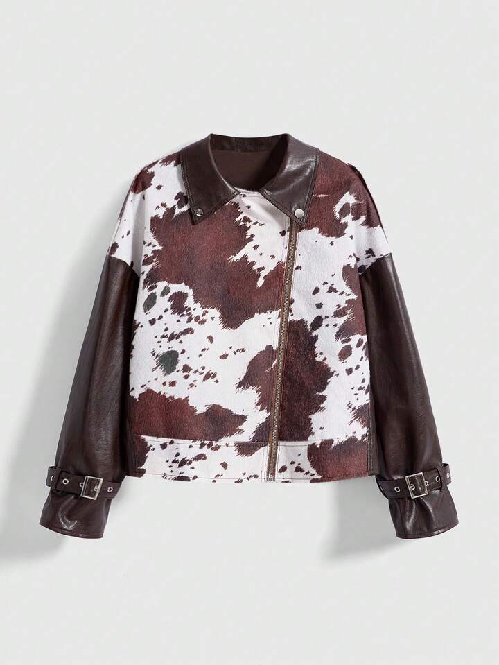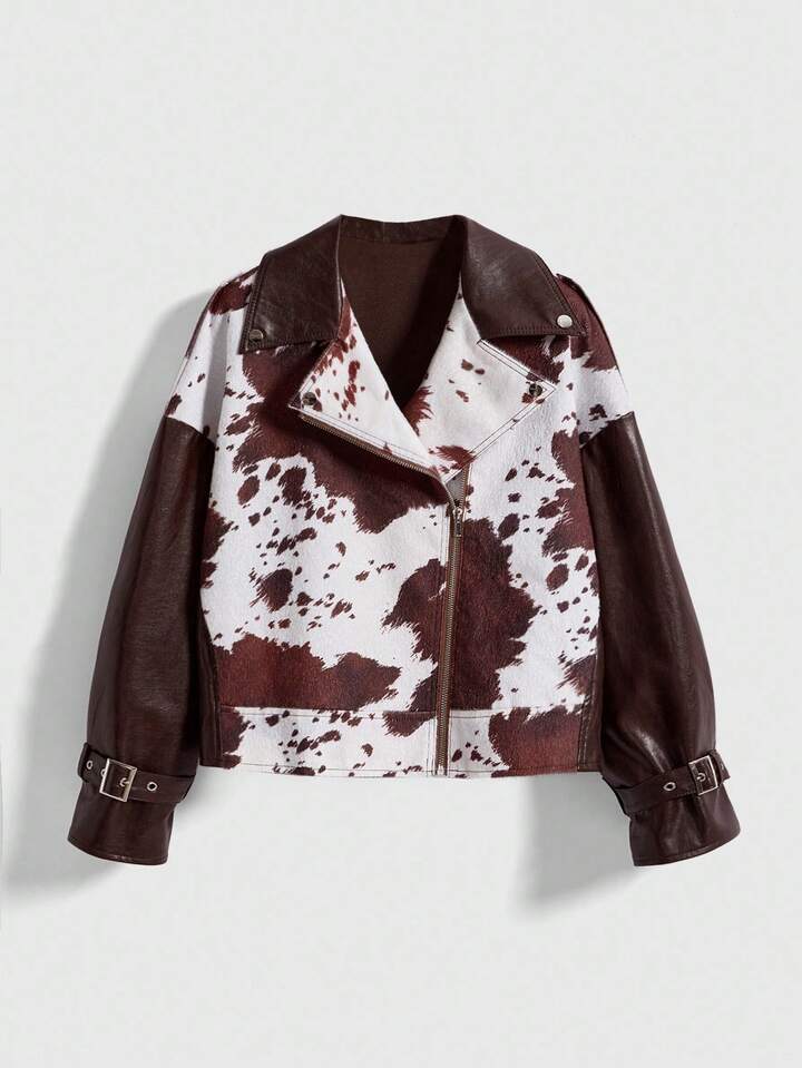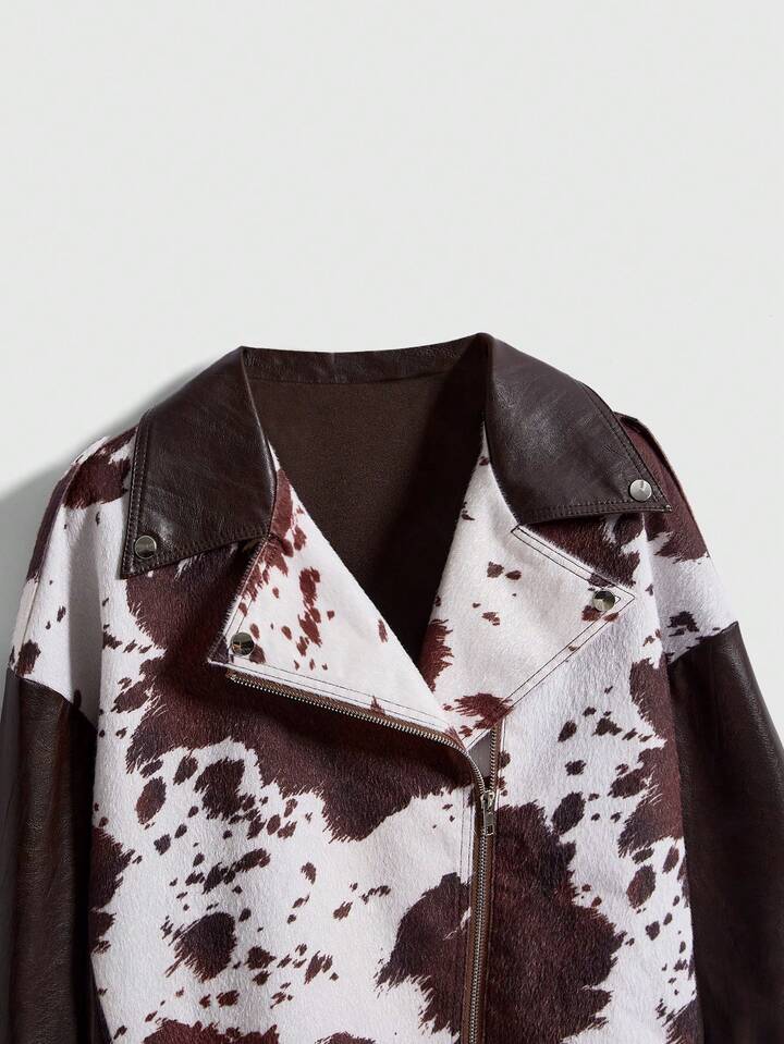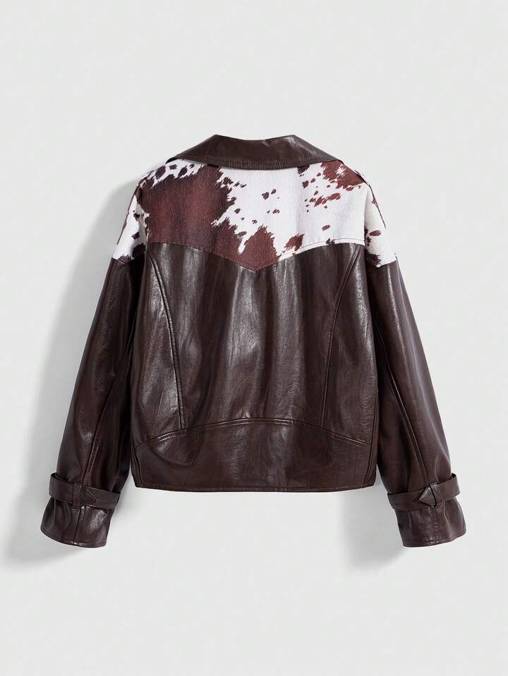 Hippie Chaqueta de cuero de mujer con parches de piel sintética de estampado animal en estilo retro Y2K