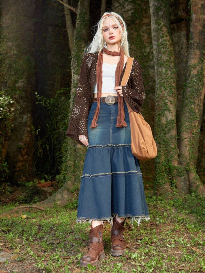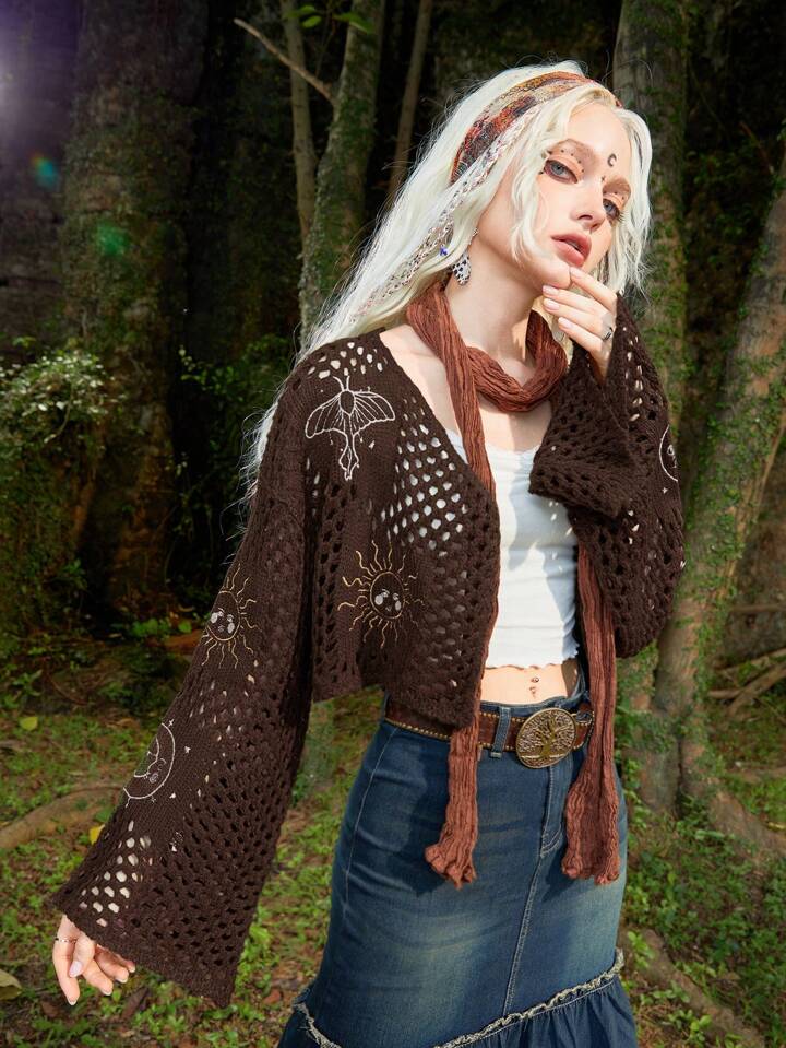 Cárdigan crop con abertura de manga con volante