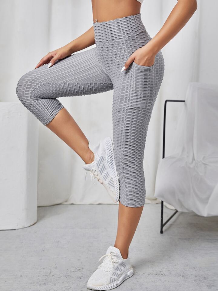 Mallas de yoga Capris de nido de abeja Mallas de gimnasia con cintura ancha y cintura ancha con bolsillo para teléfono