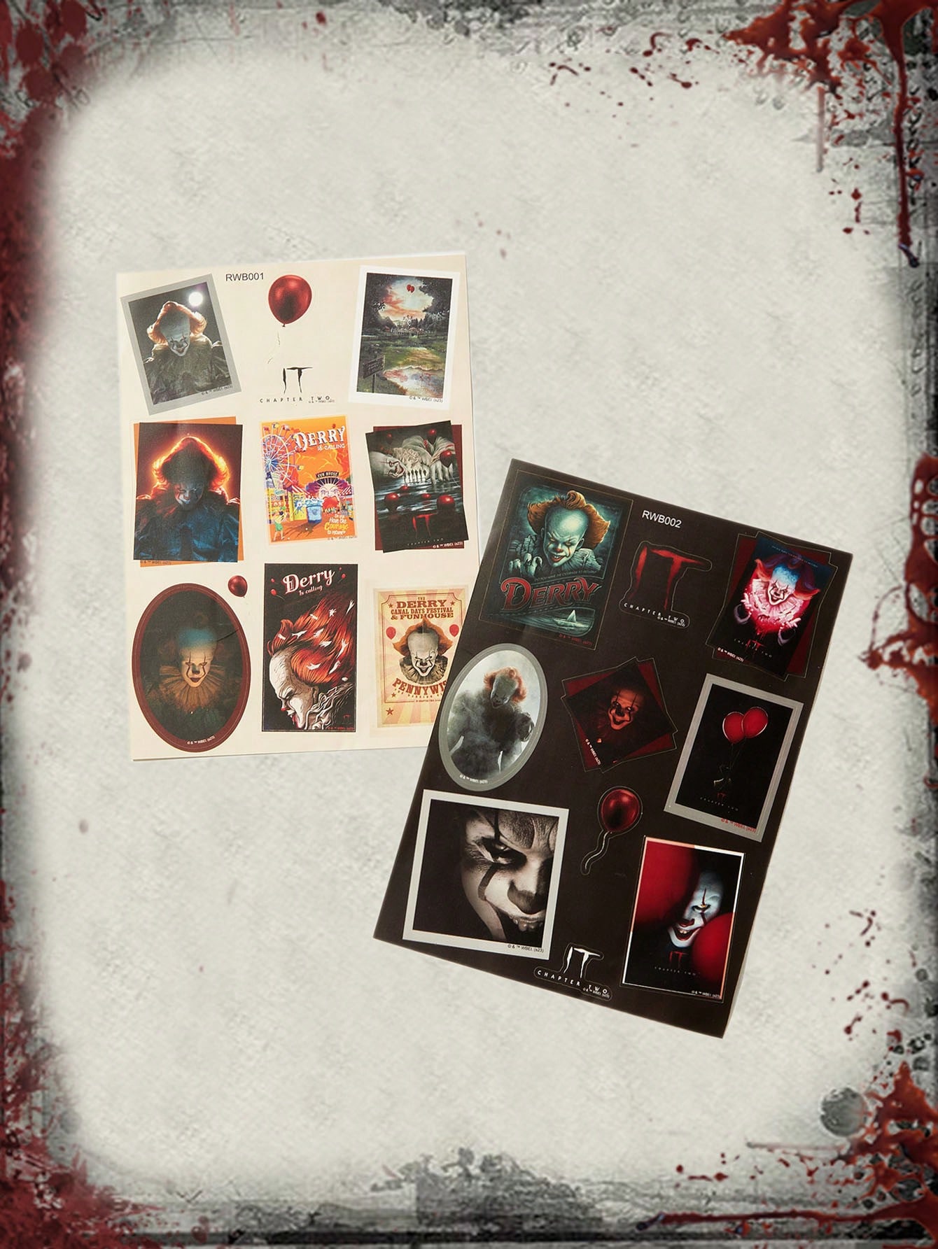 IT Chapter Two | ROMWE 2 piezas Pegatina con figura de dibujos animados con patrón mixto