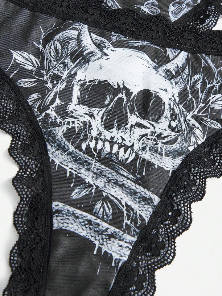 IamYouth Goth 3 piezas Set tanga estampado de cráneo con encaje en contraste