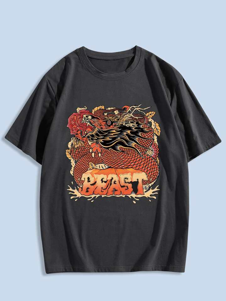 Illustfire Hombres Camiseta con letra & con estampado de dragón