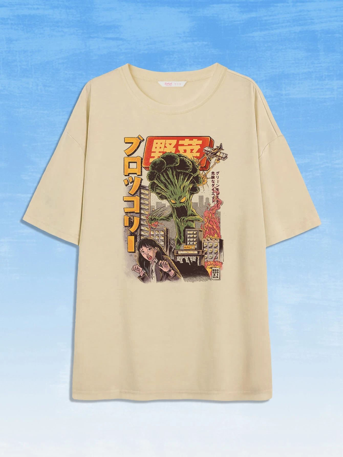 Ilustrata Anime Camiseta de hombros caídos figura & con estampado de dibujos animados