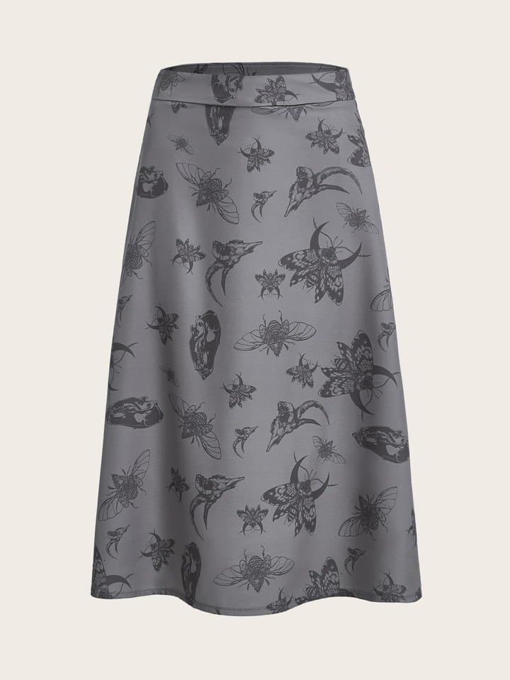 Falda de línea A con estampado de insecto