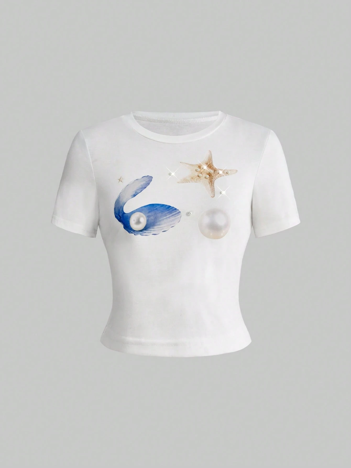 Camiseta ajustada para bebé con estampado de conchas de perla "Island Babe"
