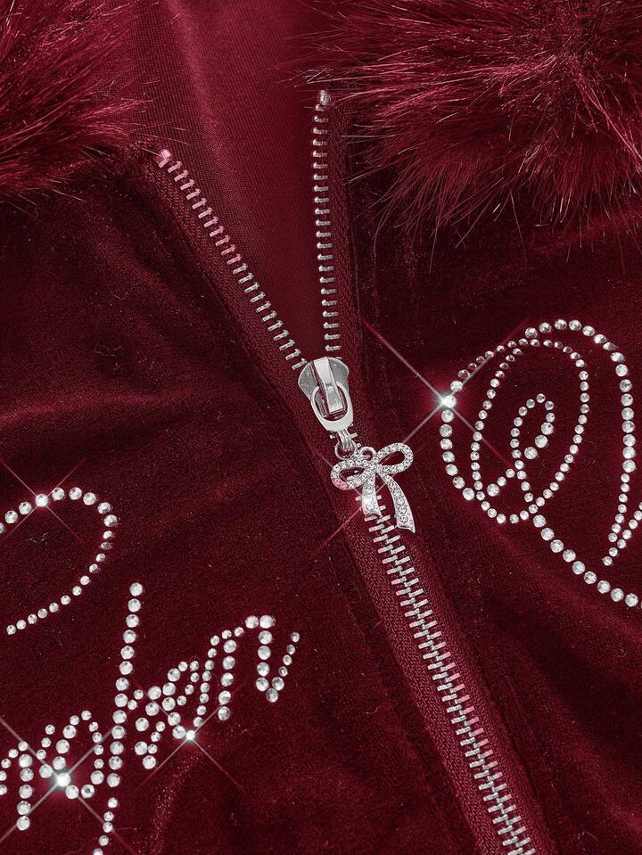 J-Fashion Set de 2 sudaderas con aplicaciones de strass de terciopelo estilo Y2K para mujer, otoño/invierno