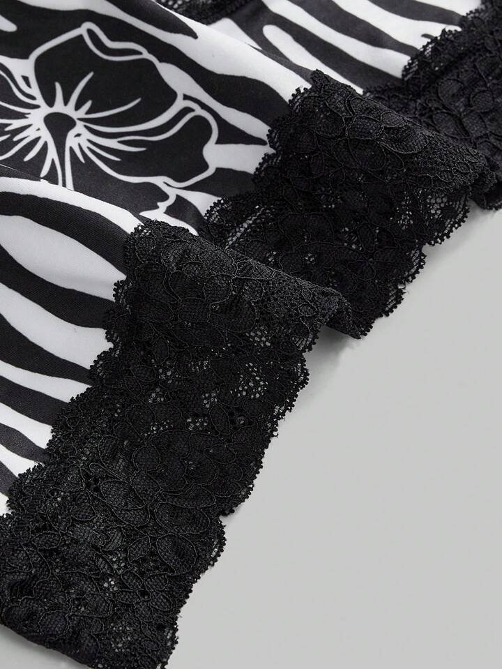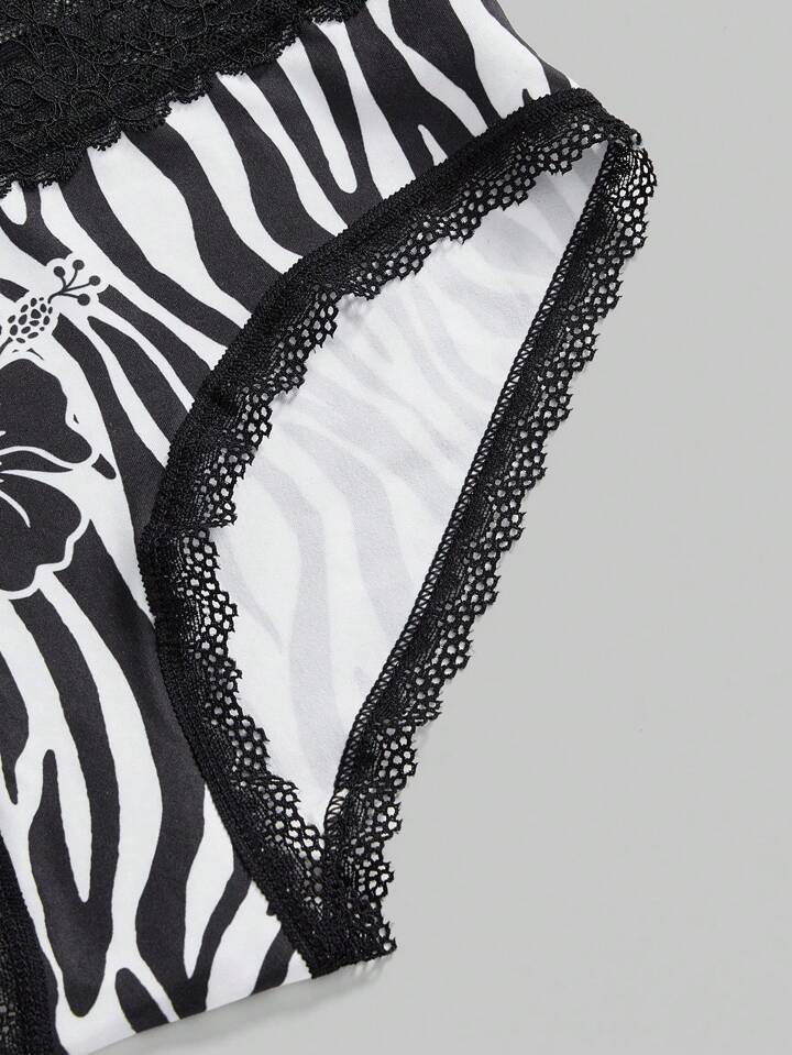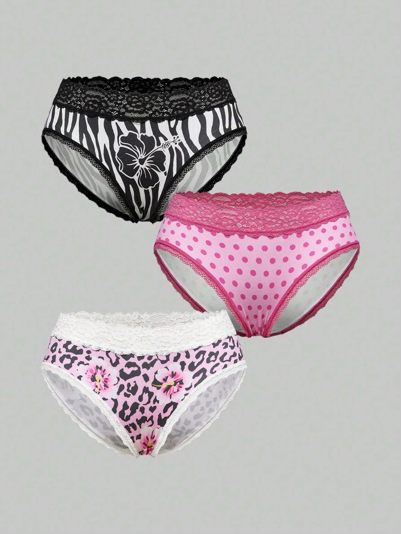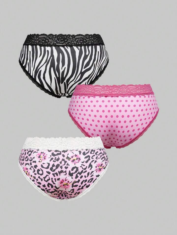 J-Fashion Set de 3 piezas de ropa interior de mujer con estampados de cebra, leopardo, lunares y encaje patchwork en estilo Y2K