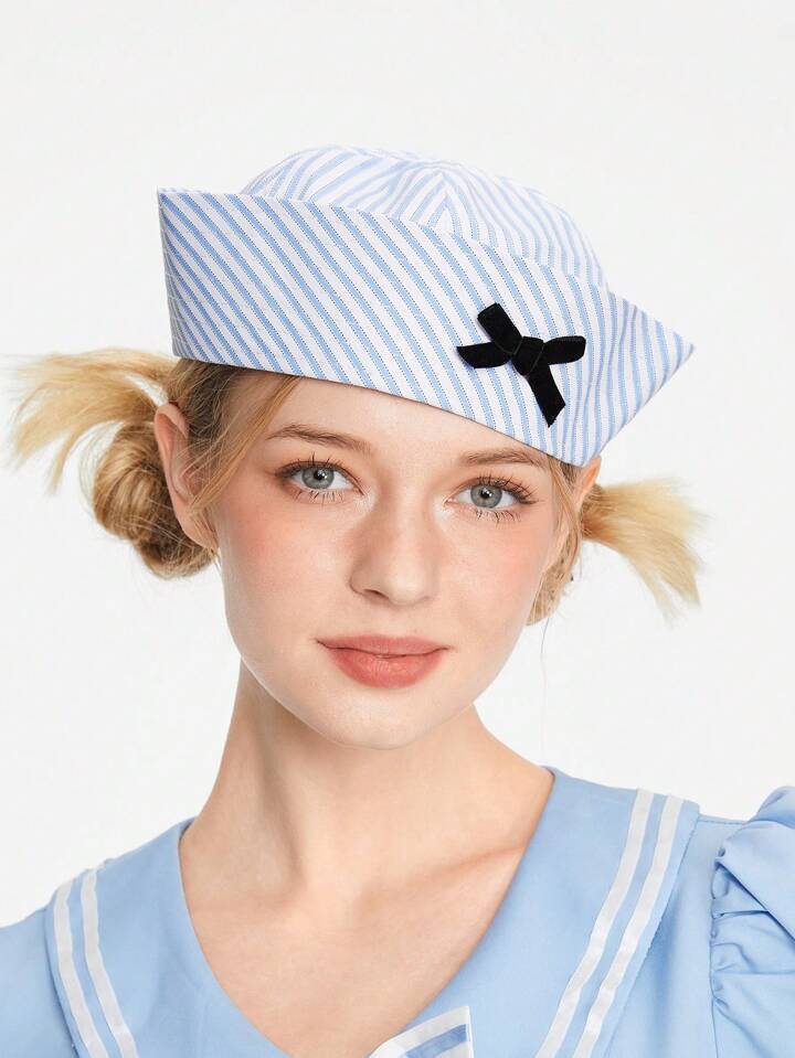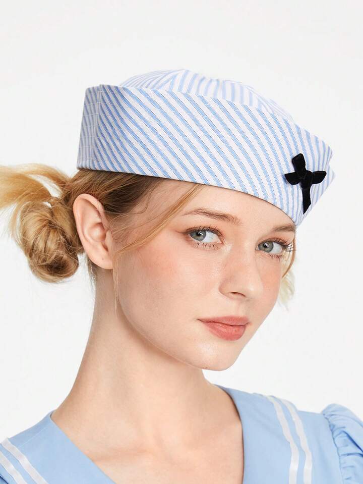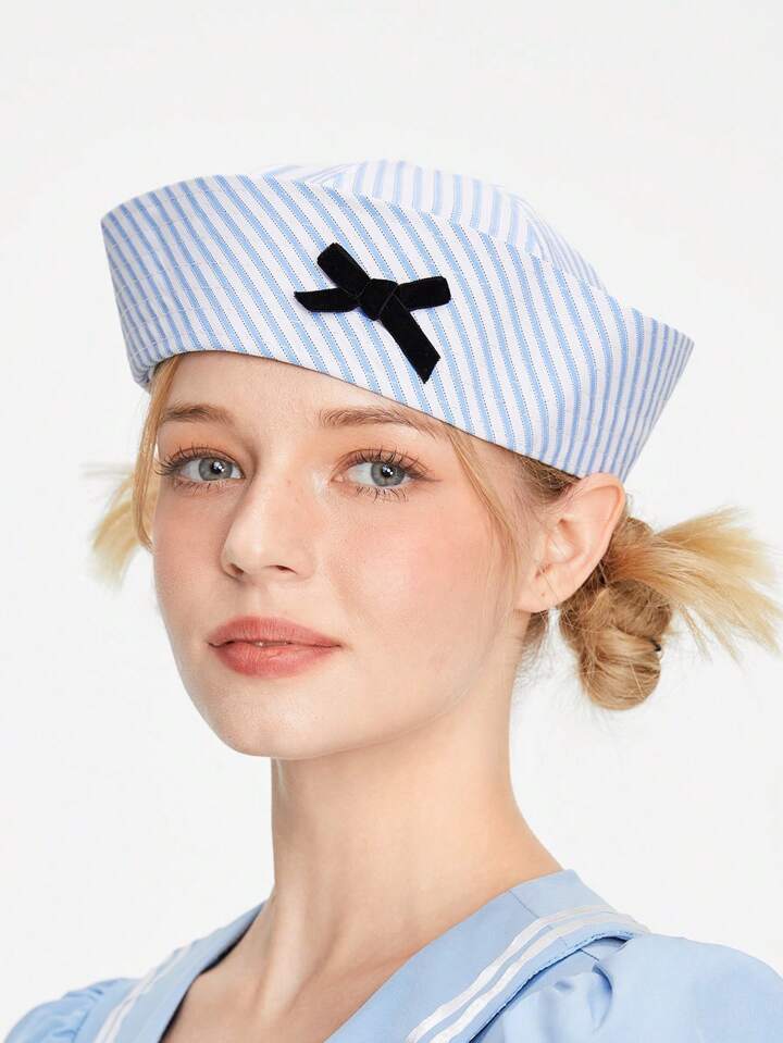 J-Fashion Gorro marinero con nudo de lazo, lindo y único, versátil gorra estilo universitario para niñas dulces