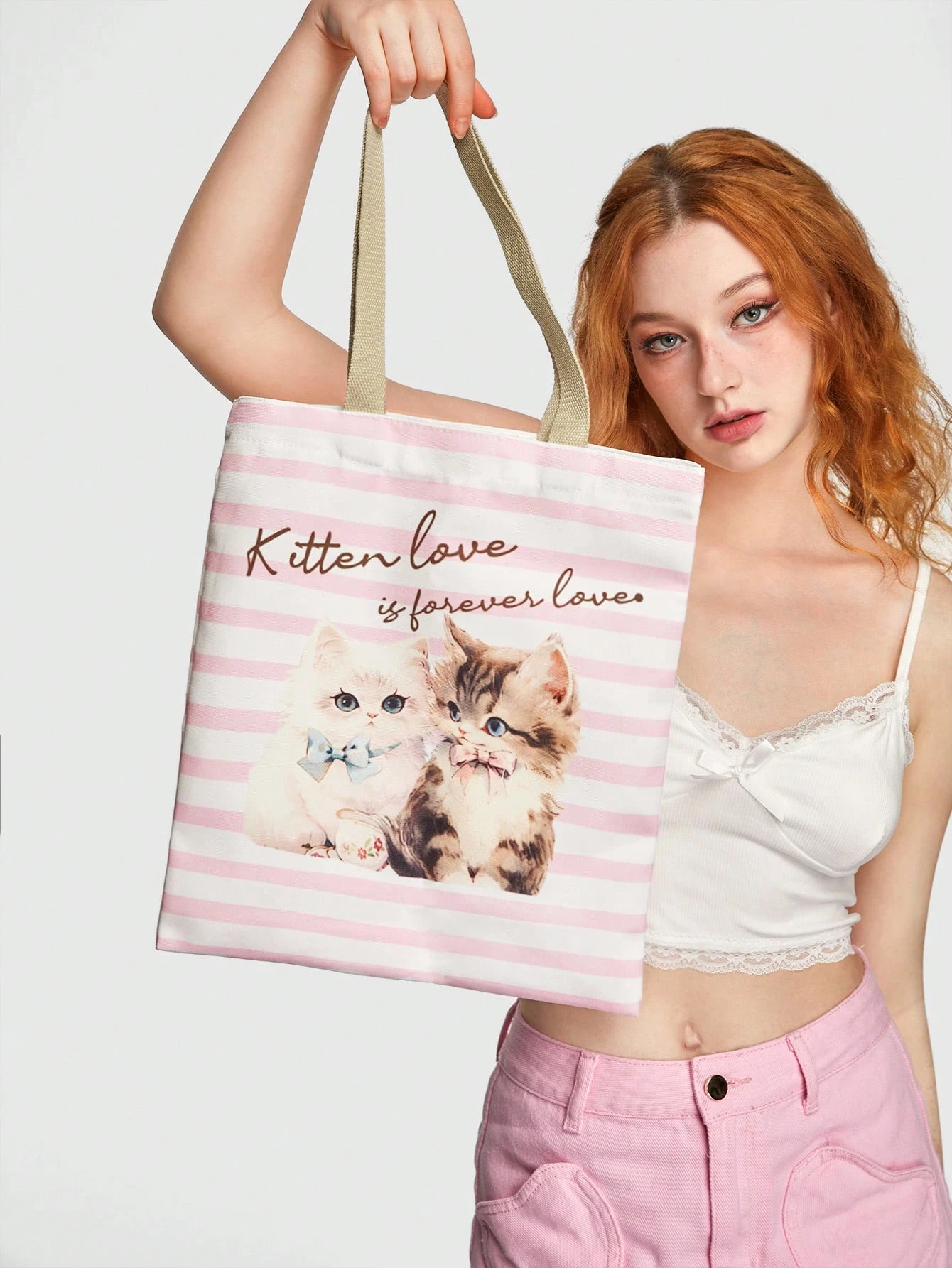 J-Fashion Bolso tote dulce con patrón de gato para mujeres