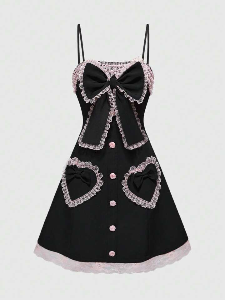 J-Fashion Vestido mini dulce para mujer con gran lazo decorativo, estilo hime gyaru