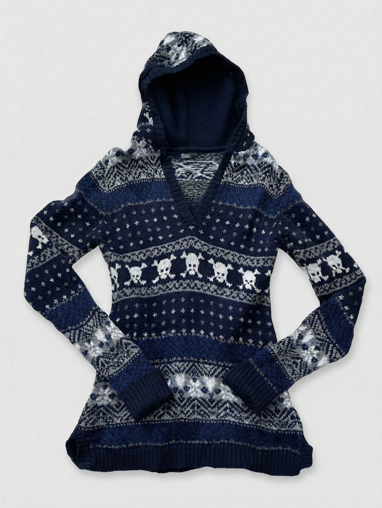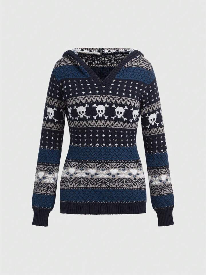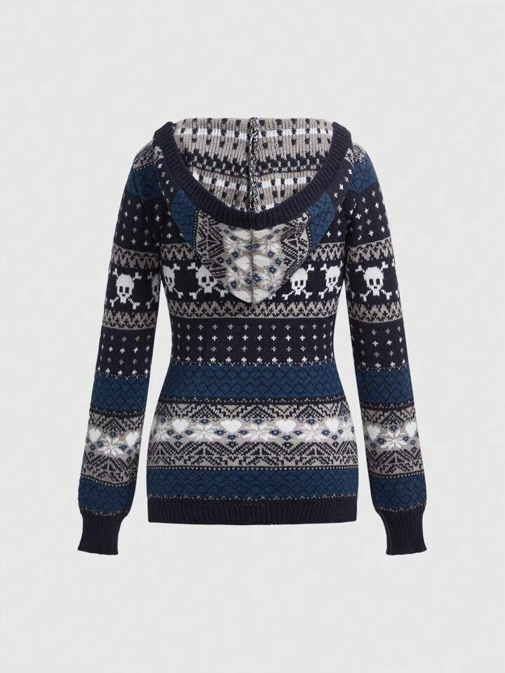 J-Fashion Sudadera con capucha de mujer con estampado jacquard de calavera de Halloween, para otoño/invierno