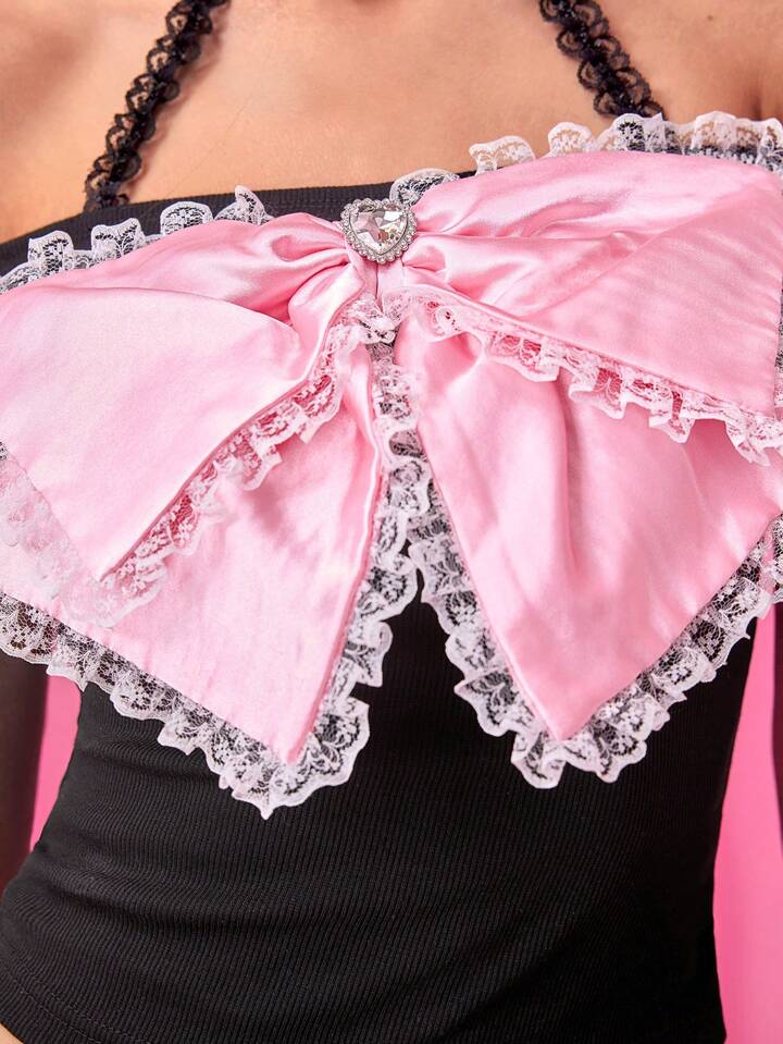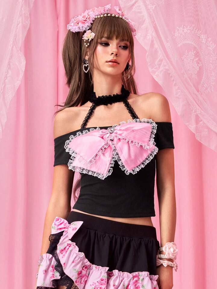 J-Fashion Camiseta de mujer con escote hombros caídos, decoración de mariposa, estilo Hime Gyaru Kawaii