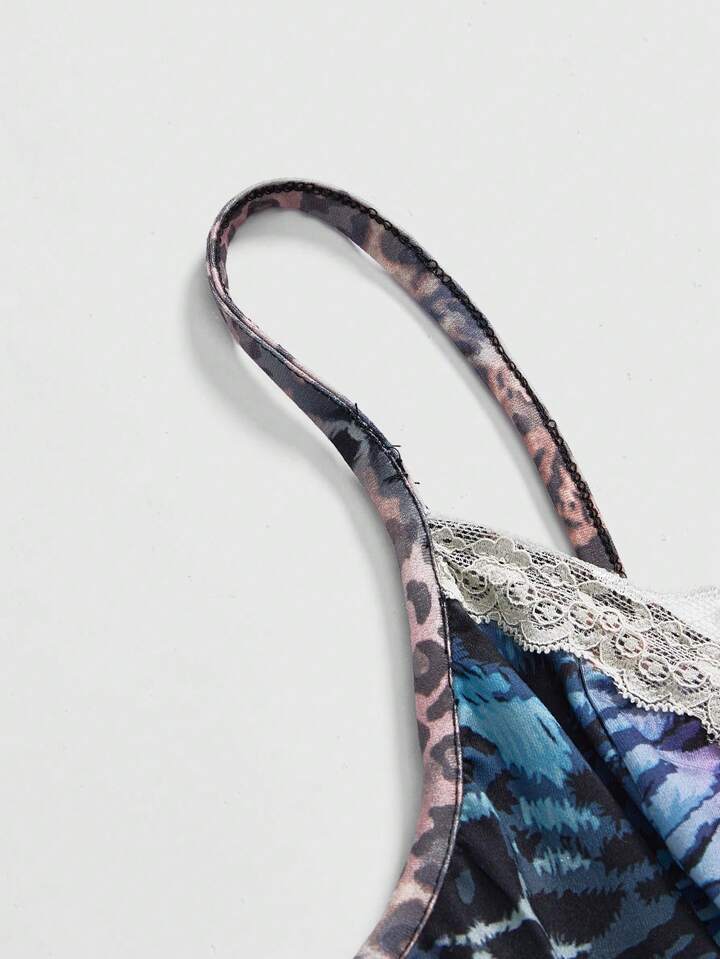 J-Fashion Camiseta de tirantes de encaje con estampado de flores y estampado de leopardo patchwork, estilo hippie milenial, para mujer
