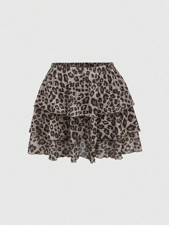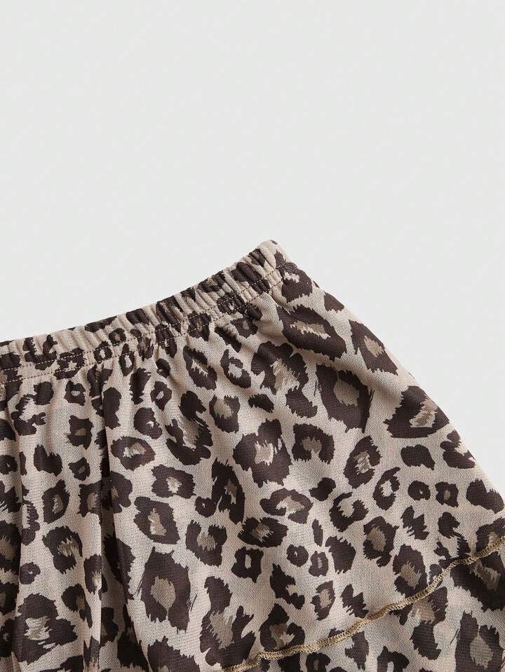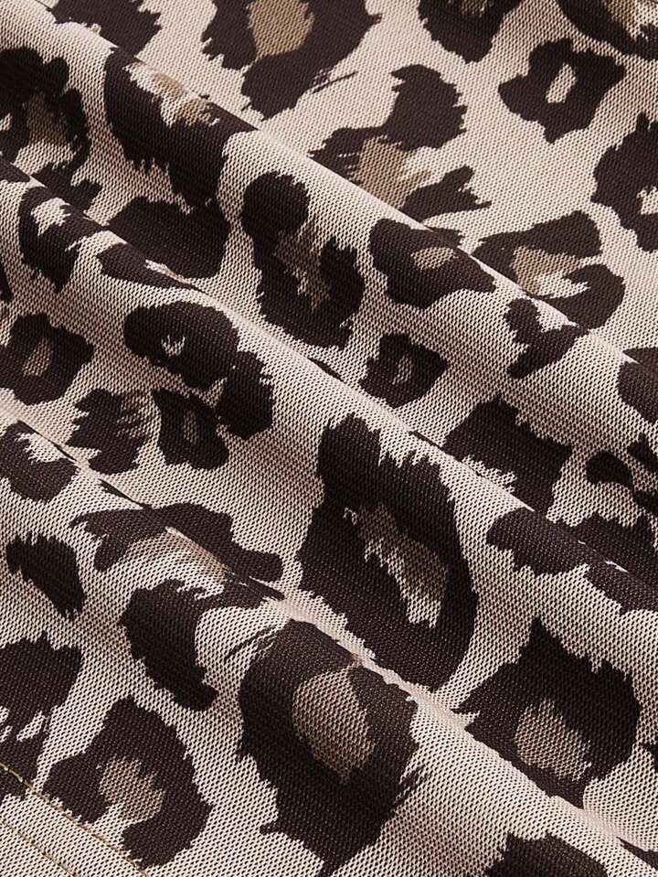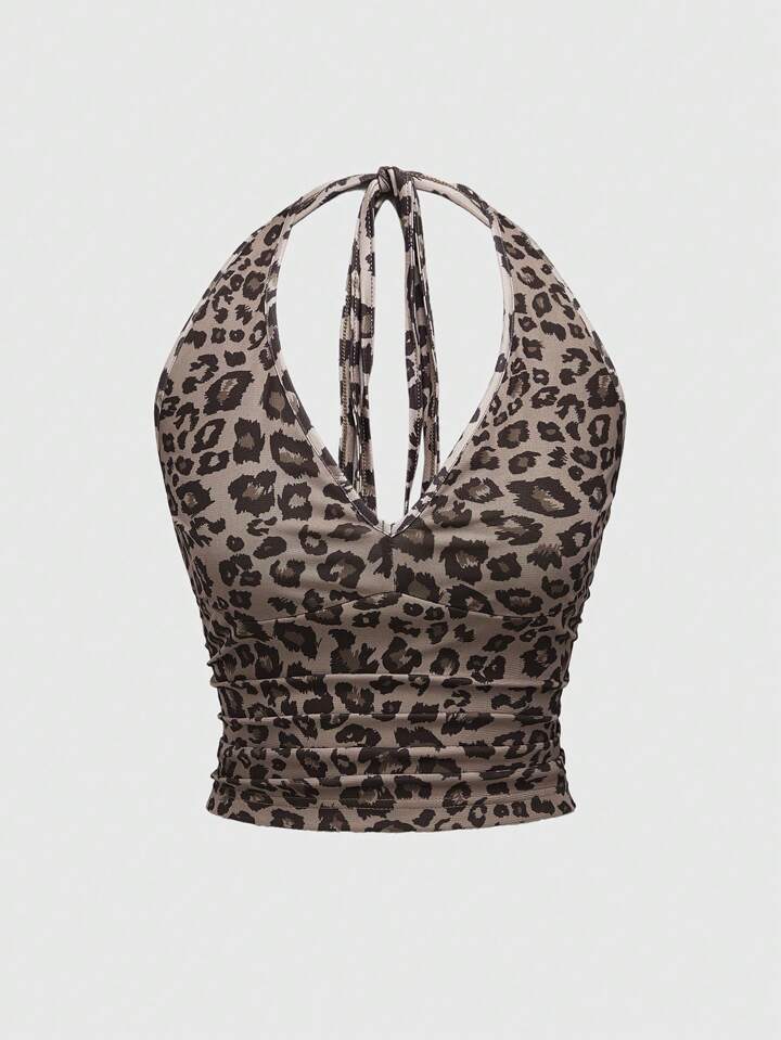 J-Fashion Sensual conjunto de Blusa corta sin mangas en estampado de leopardo, con cuello halter y falda corta plisada a juego