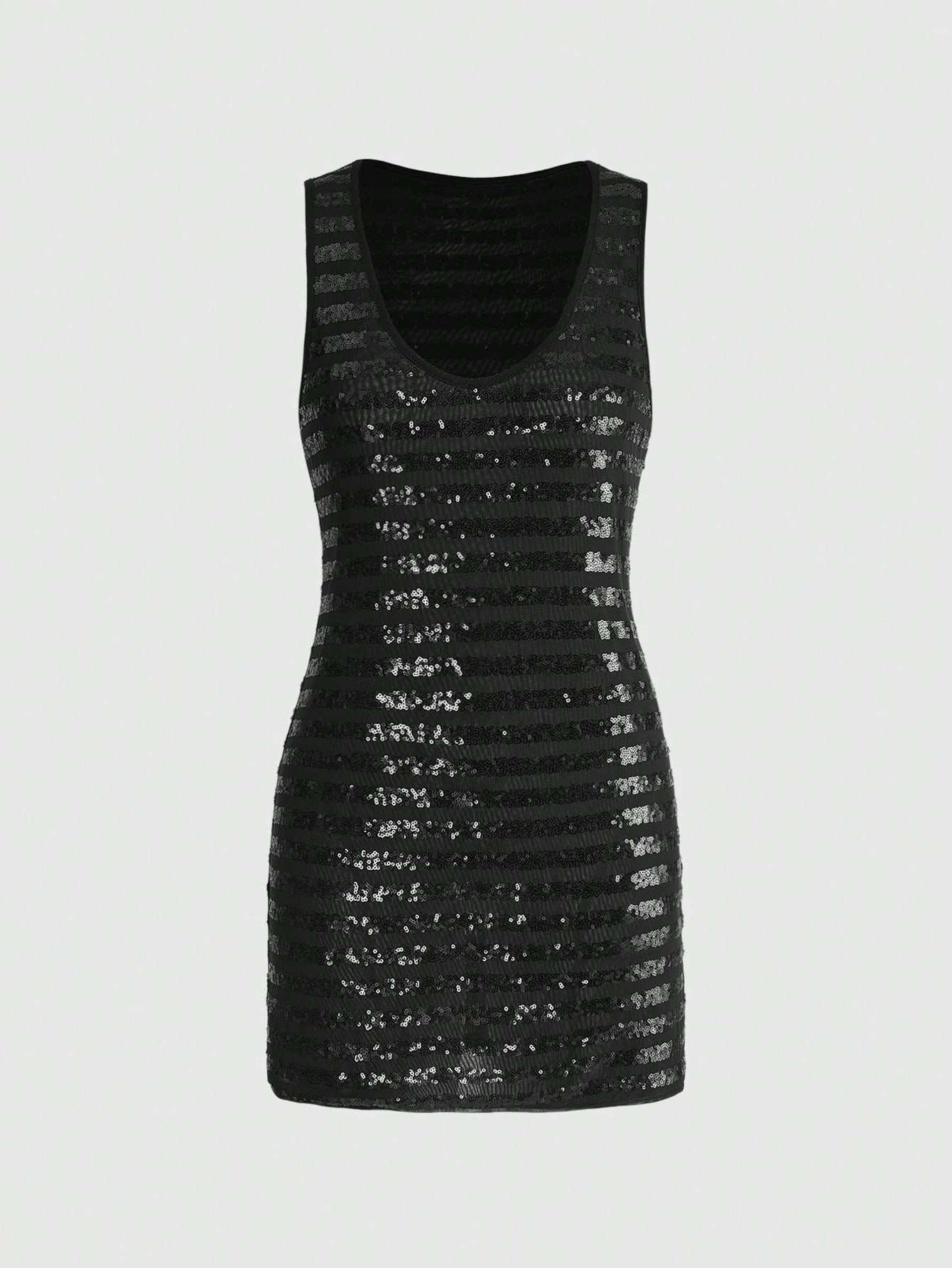 J-Fashion Vestido mini sexy con bordado de lentejuelas para fiesta de festival de música