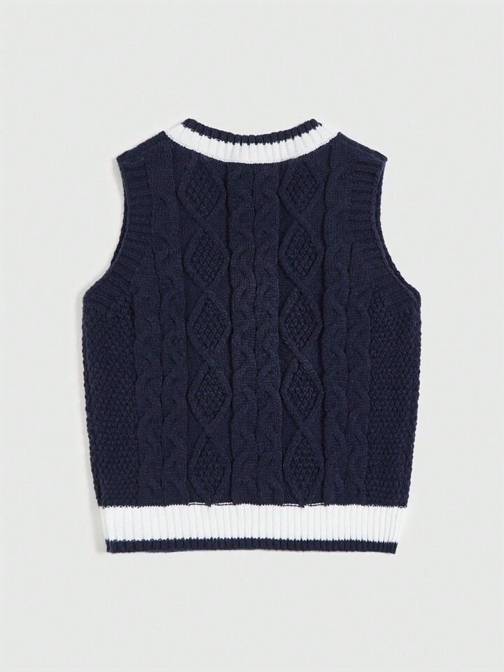 J-Fashion Chaleco de suéter informal azul y blanco de estilo universitario para primavera y otoño