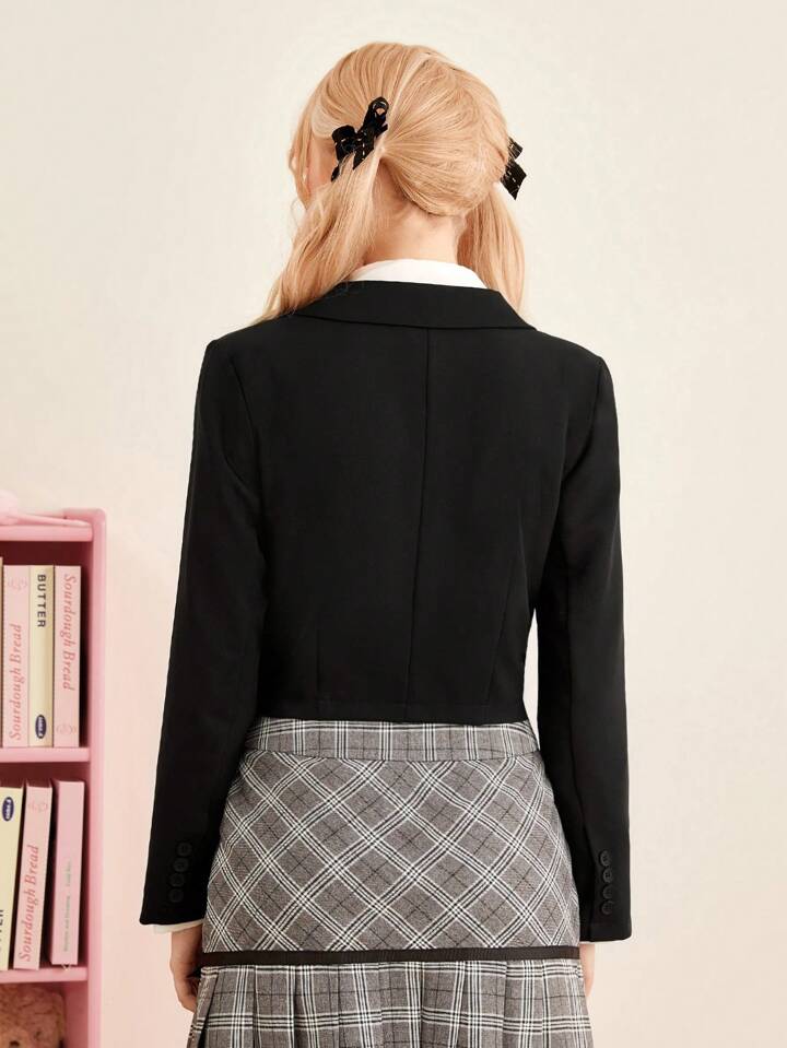 J-Fashion Blazer con estrella & con bordado de ala con parche de bolsillo con botones