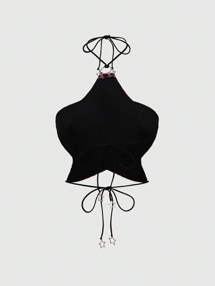 J-Fashion Top halter de mujer con estampado de leopardo, chita y estrella sexy, para otoño/invierno