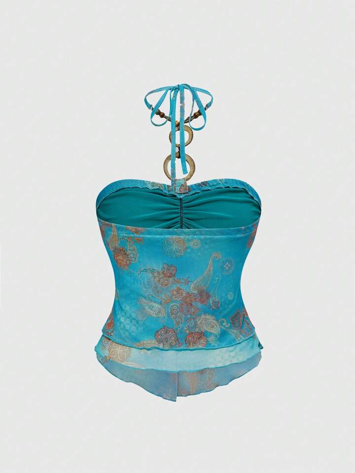 J-Fashion Top sin tirantes y sin espalda con estampado floral de anacardo retro para mujer