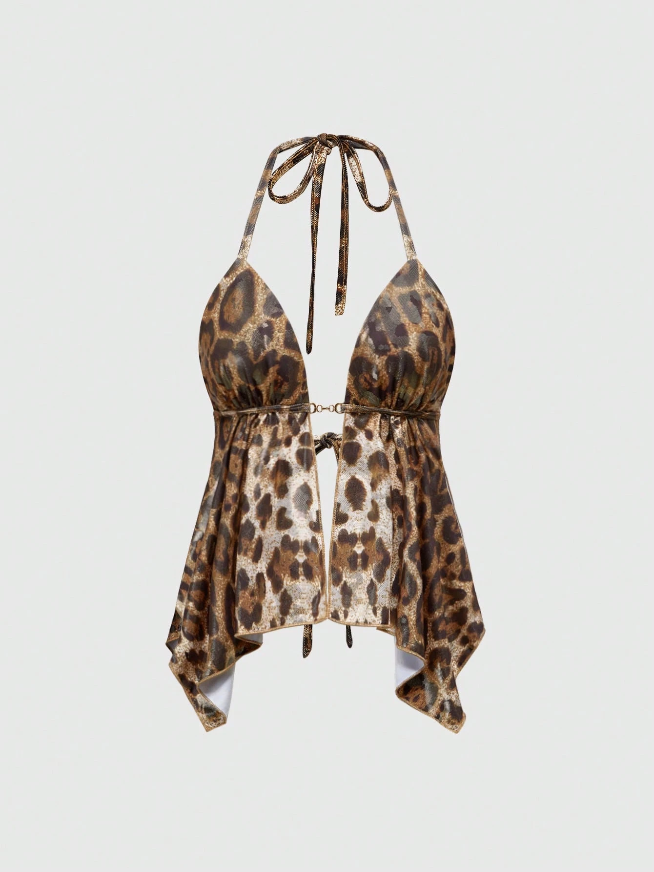 J-Fashion Camiseta sin espalda sexy de mujer con estampado de leopardo y hebilla metálica en el cuello halter