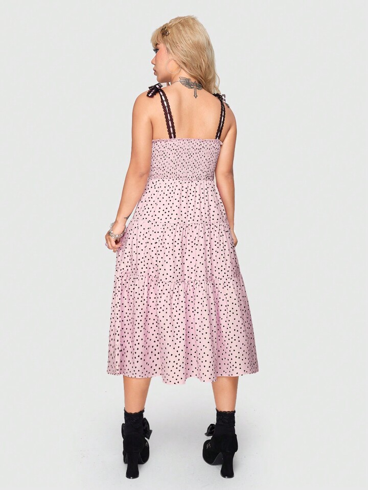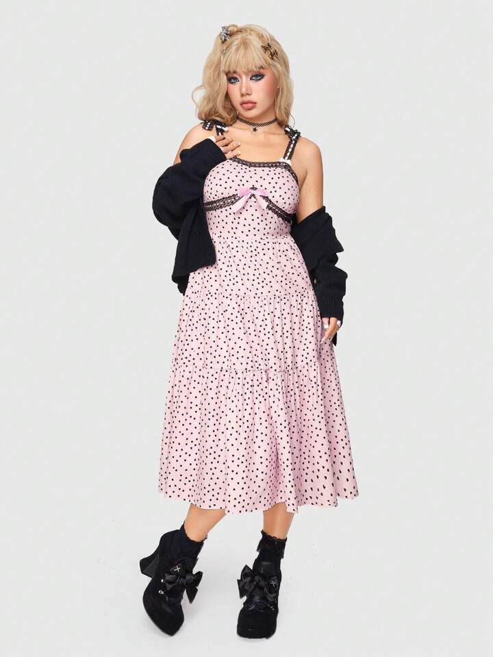 J-Fashion Vestido Estampado Con Empalme De Encaje Sin Mangas Para Mujer Con Patrón De Corazón