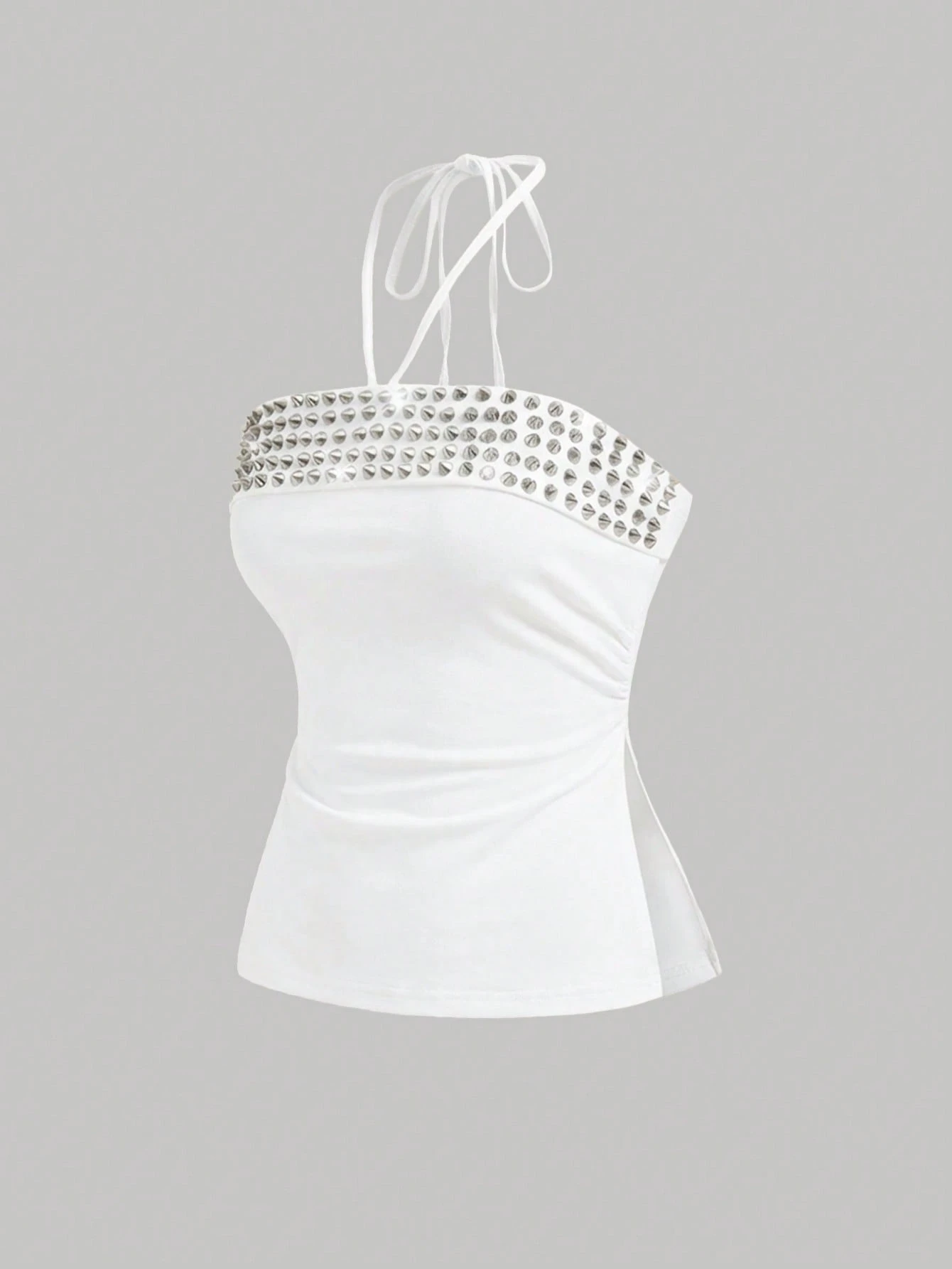 J-Fashion Top corto de mujer con tachuelas, estilo punk callejero