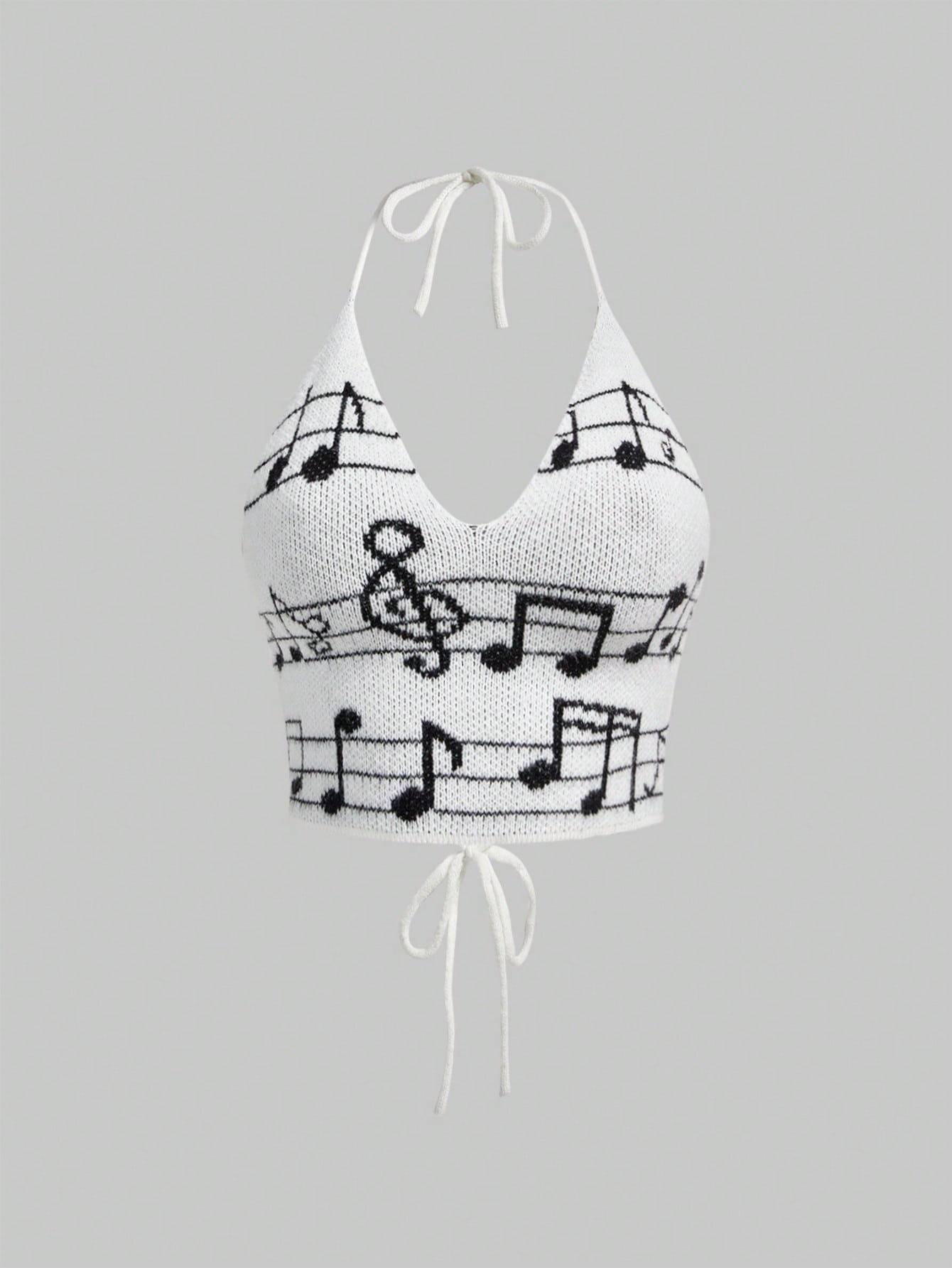 J-Fashion Suéter de cuello halter con estampado de notas musicales y clave de sol en tejido jacquard vintage para mujer