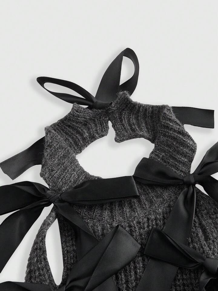 J-Fashion Jersey de punto con abertura y lazo para mujer, estilo Y2K