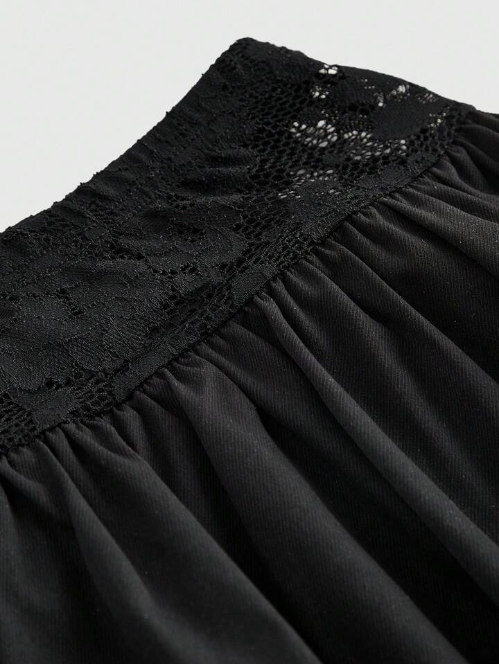 J-Fashion Pantalón de 2 en 1 con panel de encaje y dobladillo en forma de tulipán, de estilo retro sexy y ballet inspirado en la Y2K para mujeres