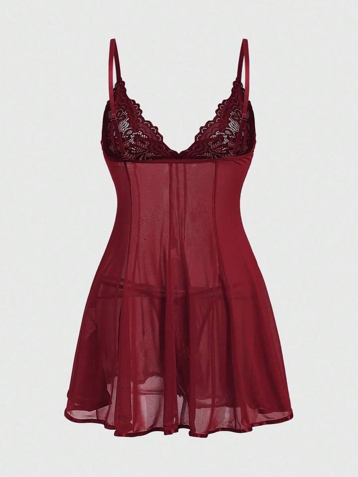 J-Fashion Conjunto de vestido transparente sexy con parches de encaje y malla, estilo vanguardista Y2K