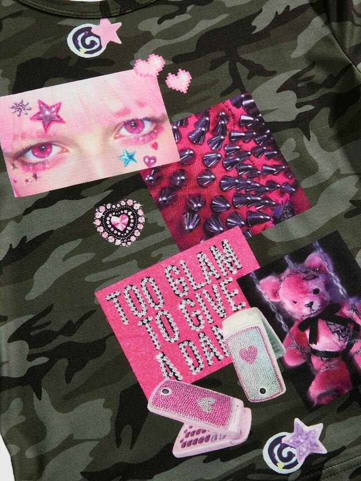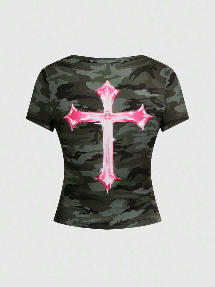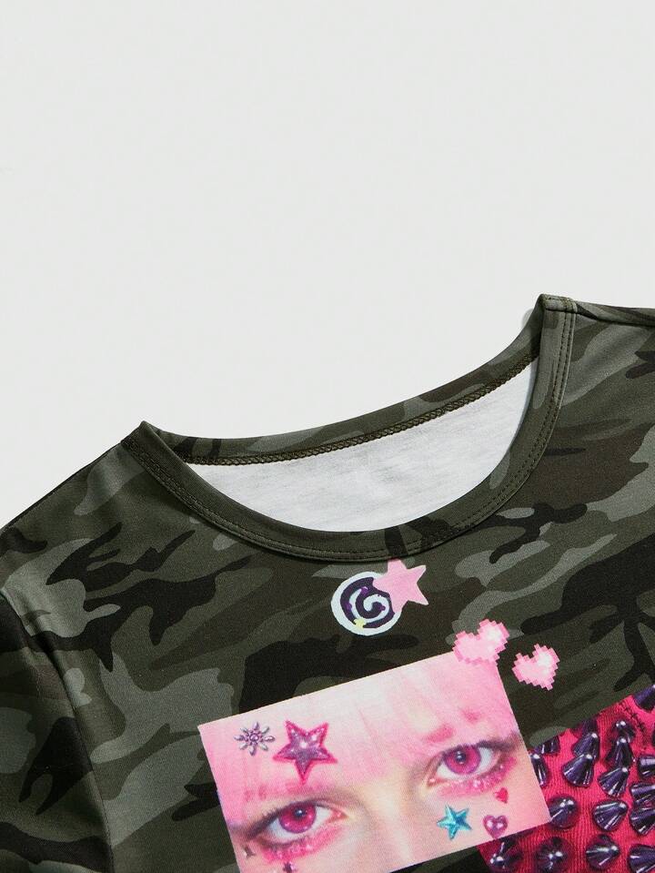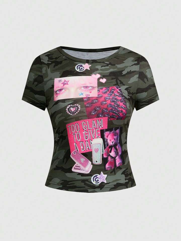 J-Fashion Camiseta ajustada de mujer con estampado de camuflaje Abby Element Babe Y2K