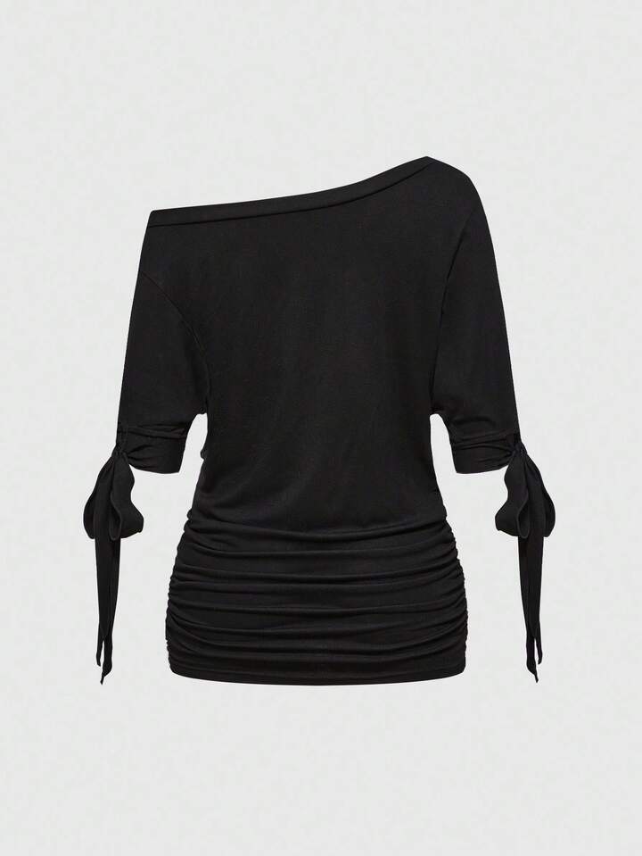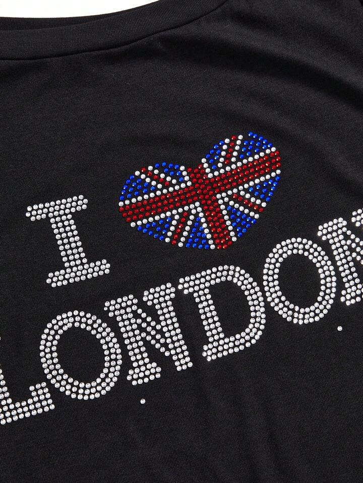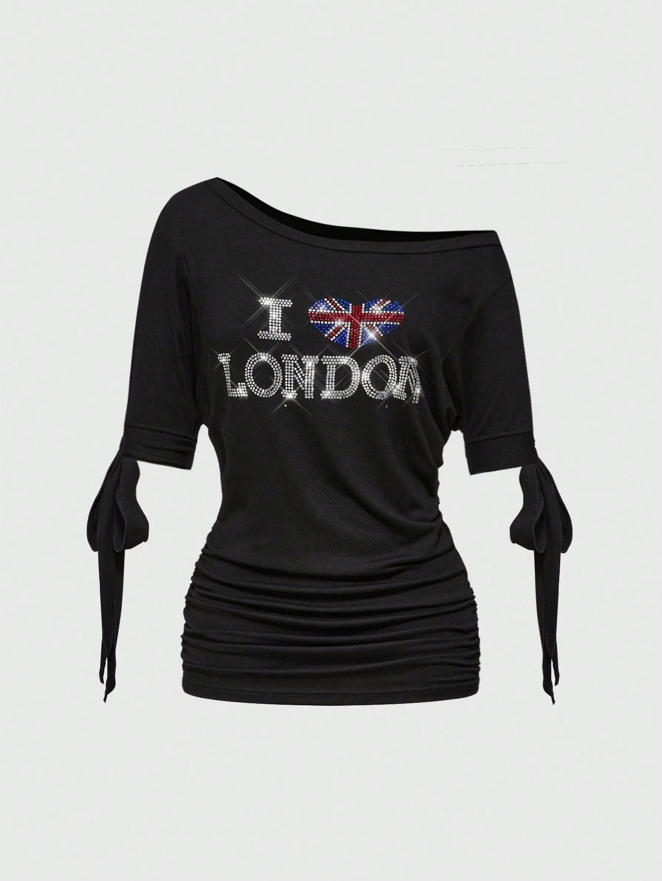 J-Fashion Camiseta ajustada de mujer con un hombro, mangas de murciélago y aplicaciones de cristal con bandera estadounidense y texto en inglés, estilo Y2K Baddie