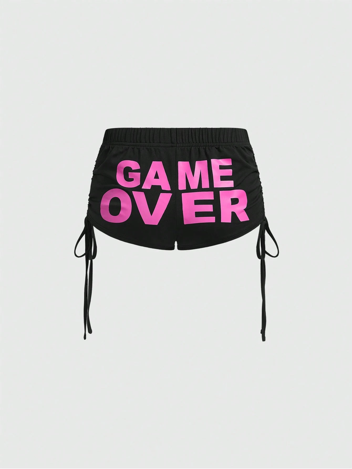 J-Fashion Shorts con estampado de letras, malla y fruncidos de tiro ultra bajo estilo "baddie" Y2K para mujeres