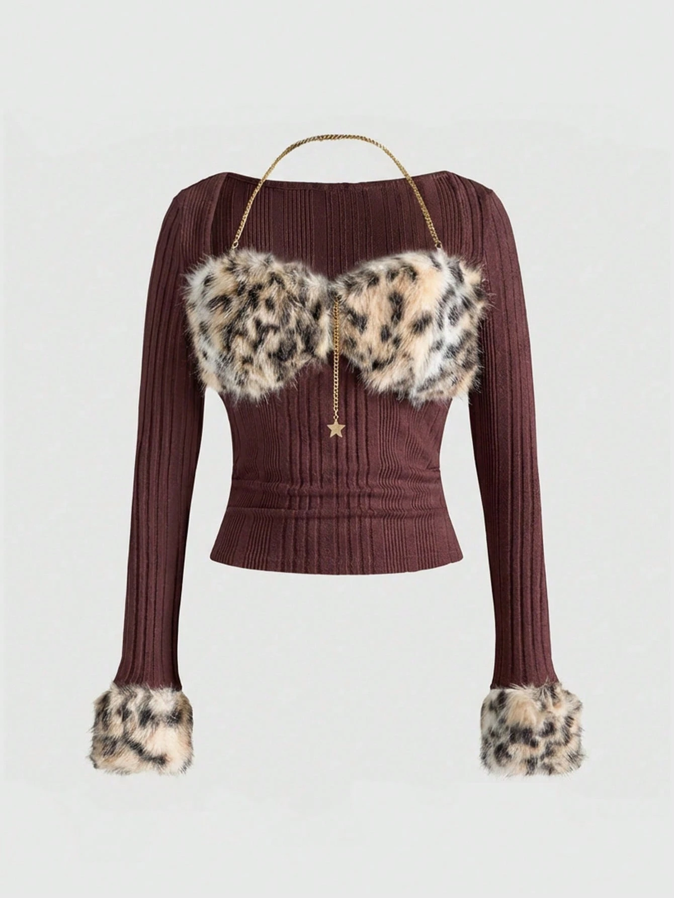 J-Fashion Top corto ajustado con cremallera y estampado de leopardo deshilachado, estilo Harajuku chic Y2K para mujeres