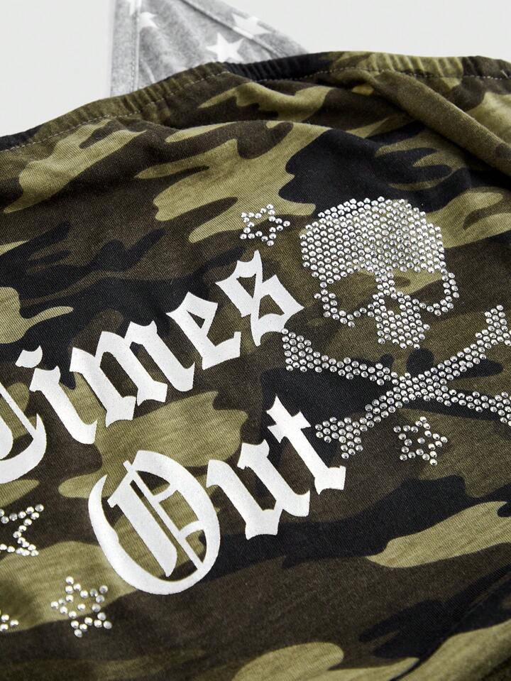 J-Fashion Top con escote halter con estampado de esqueleto de cristal rhinestone en estilo Harajuku gótico para mujeres