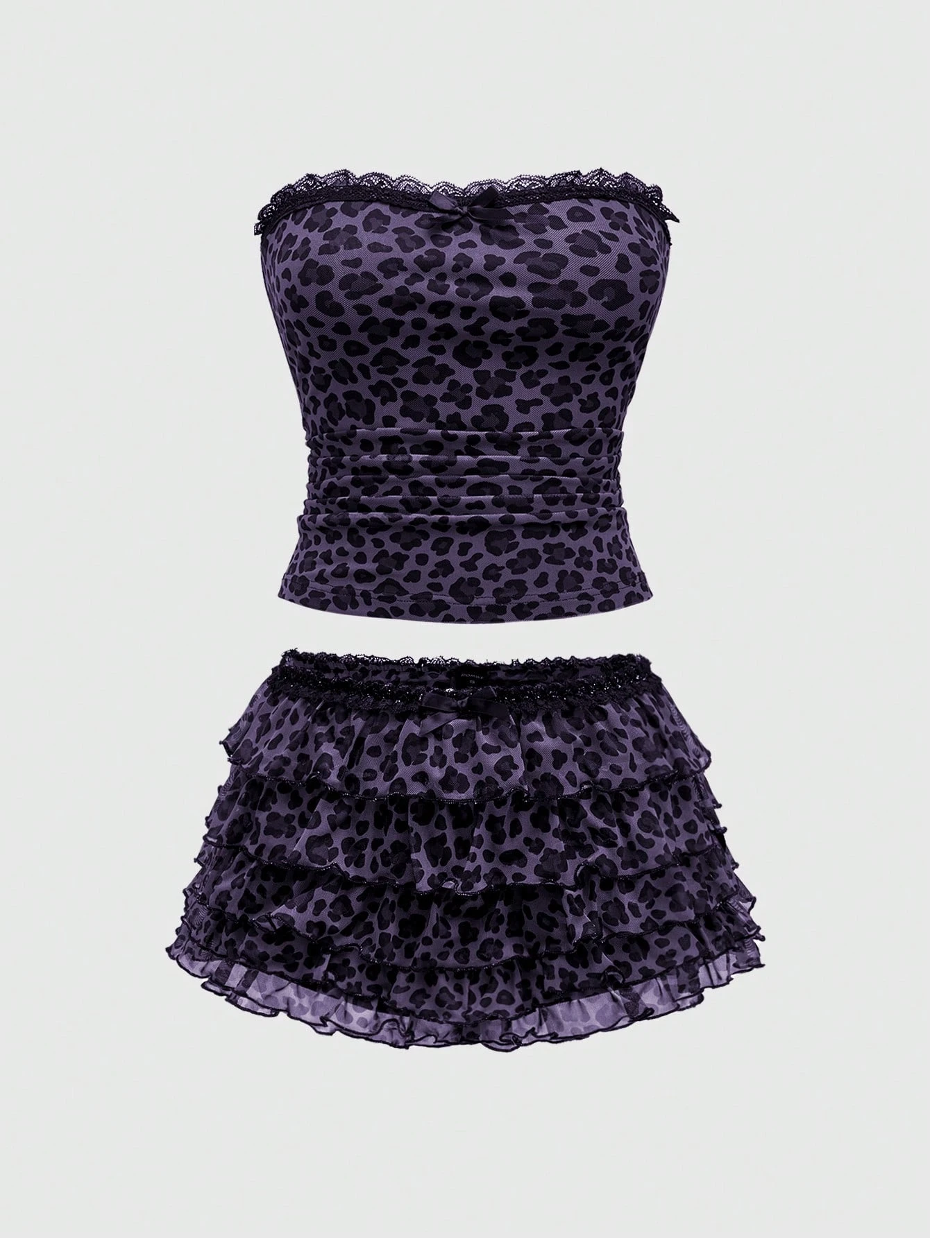 J-Fashion Conjunto de 2 piezas de shorts estilo pastel con estampado de leopardo Y2K para mujer